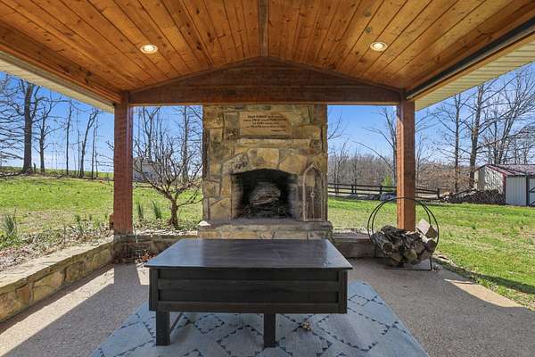 As great as the home is, the land is the real highlight. Enjoy mornings on the covered front porch watching the horses graze, or host friends under the covered outdoor patio complete with a stone fireplace.
