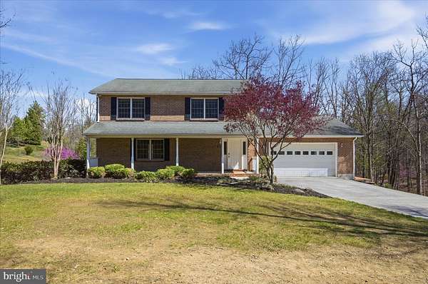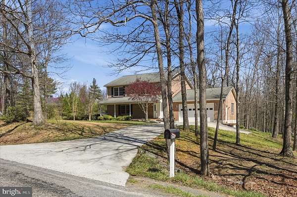 Welcome to this 3-bed, 3-and-a-half-bath all-brick estate offering the perfect blend of privacy, space, and convenience, set on 4 picturesque wooded acres just 15 minutes from Winchester and close to major commuter routes. The main level features a welcoming living room with a gas fireplace, a formal dining room, a spacious kitchen with Corian counters, and convenient first-floor laundry. Upstairs, the primary suite includes access to a private deck, complemented by two generously sized bedrooms and a full bath. Hardwood floors run throughout, and the upper level has been freshly painted for a move-in-ready feel. The fully finished walkout basement adds valuable living space, featuring a second gas fireplace, a full bath, and direct access to the property. Recent updates include a new water softener, 80 gal water heater ('25), and HVAC in the attic ('22), plus the added security of multiple built-in safes on all three levels and a whole-house generator. Enjoy outdoor living with a double-decker composite deck and the convenience of two driveways offering ample parking. Buyers are to do their due diligence; owners never lived on the property.