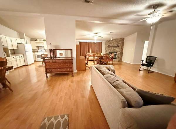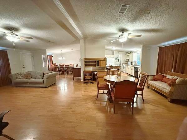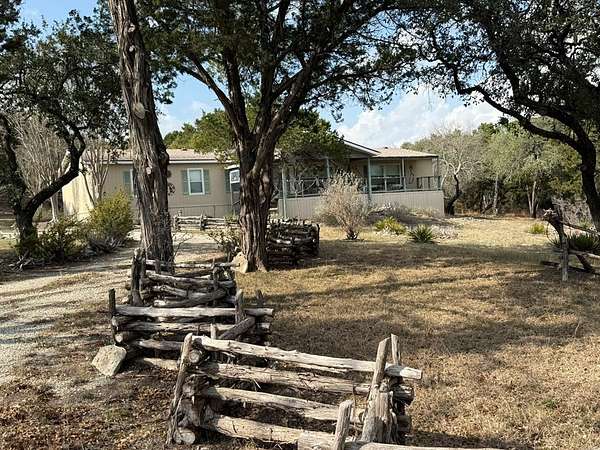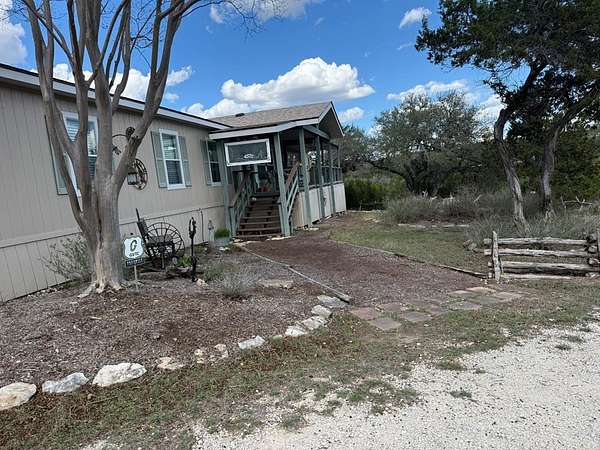 Hilltop lake view home on 10 acres in a great Canyon Lake location. No restrictions or HOA, so enjoy the property as you like. This well-maintained 2,432 sq ft mobile home features huge rooms, 3 bedrooms, 2 bathrooms with large closets, ceiling fans throughout, a formal dining room, eat-in kitchen, large walk-in pantry, and a family room with a fireplace. It has a split floor plan. The land has 4 levels. House is on the third level, front lower level is park-like with fencing in front only. Fence around the back yard. Large concrete water storage tank. Seasonal creek on lower level. Close to the Canyon Lake Airport, Old Hancock Trails on the lake, and Brookshire's grocery store. Live here, add cabins, so many possibilities. This one will not last. So hurry up and make an appointment.