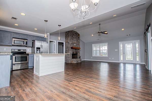 Built in 2018 and FRESHLY painted, this beautifully maintained ranch home sits on approximately 1.81 acres, offering the perfect blend of privacy, comfort, and convenience. A scenic drive leads you to a peaceful setting where quiet surroundings and a breathtaking stone fireplace create a warm and inviting retreat. Inside, the home offers easy one level living with an open, welcoming feel making everyday living and entertaining effortless. Beautifully maintained and thoughtfully designed, if this home had a name, it would be "Peaceful Haven".