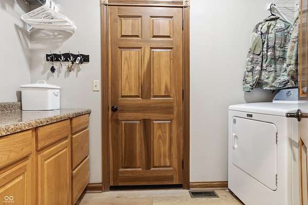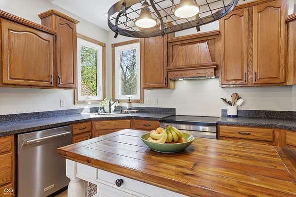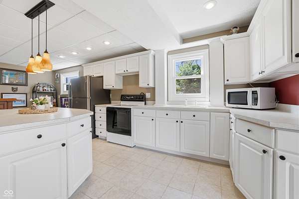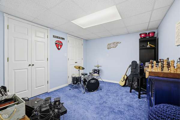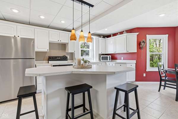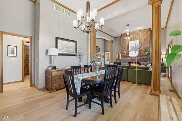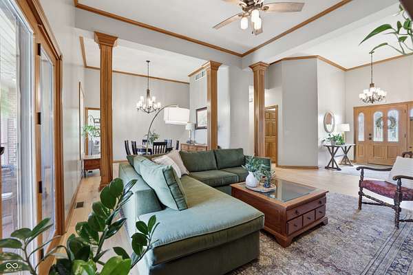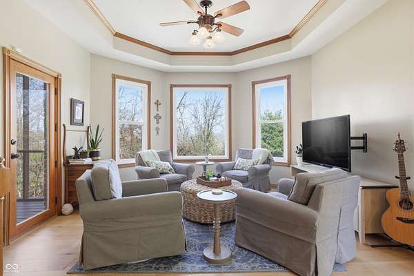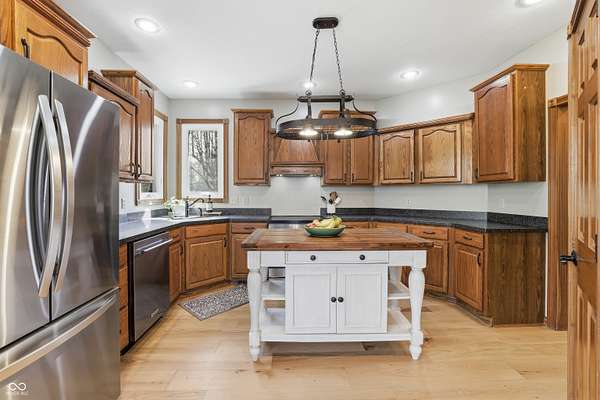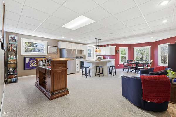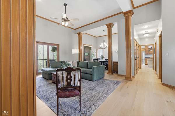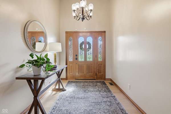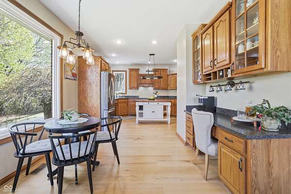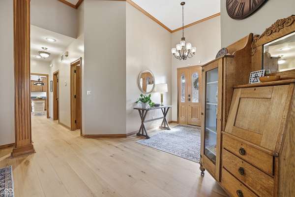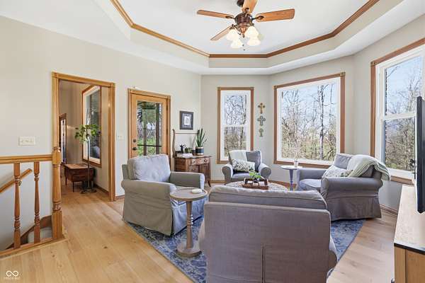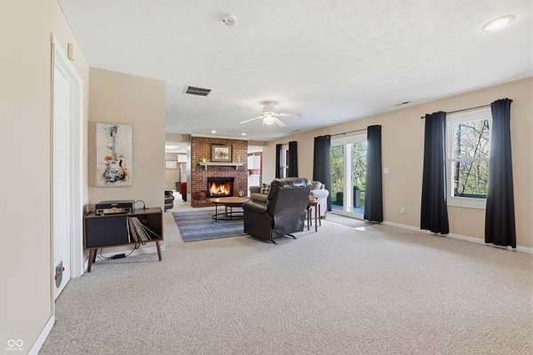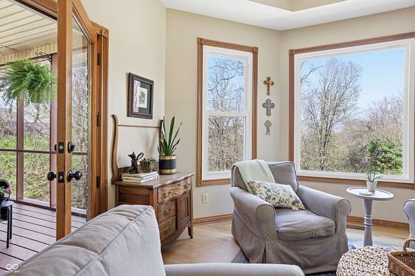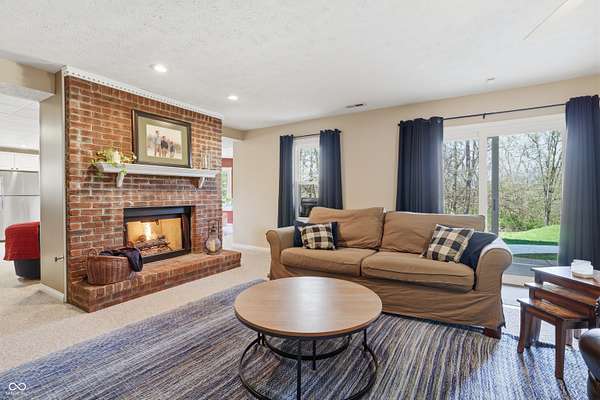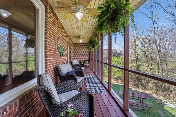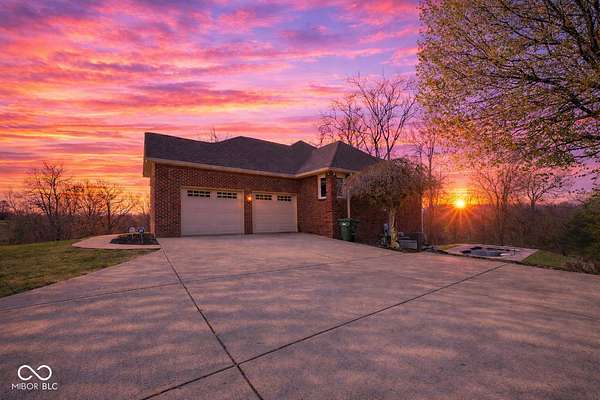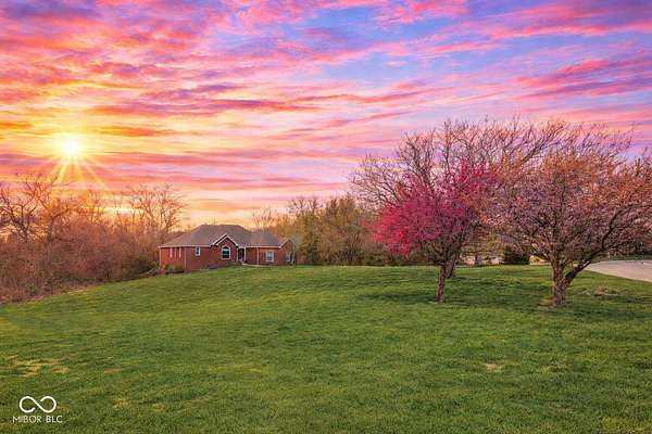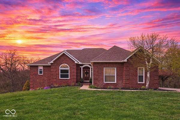 Custom brick estate on 2.39 private acres featuring private in-law quarters and a true two-in-one layout. Designed for multi-generational living, entertaining, and everyday comfort with unmatched privacy. From the moment you enter, the scale and design make an immediate impression. A dramatic two-story gas fireplace anchors the open-concept living space, where natural light pours in and every detail feels intentional. The seamless flow leads to a peaceful screened-in porch overlooking your private backyard oasis, with an additional sitting area perfect for unwinding or entertaining. The main level is designed for true everyday living with a spacious primary suite and laundry access on every level. Bedrooms feature vaulted and tray ceilings, generous proportions, and walk-in closets that deliver both function and style. The walkout lower level lives like its own private residence, featuring a full second kitchen, additional primary suite, and a second gas fireplace. Walls of windows bring in natural light, while direct outdoor access makes this space ideal for extended family, guests, or entertaining on a larger scale. Outside, the property transforms into a true private retreat. The new fiberglass pool, complete with heat and chill settings and an automatic cover, serves as the centerpiece of a thoughtfully designed outdoor space. Surrounded by mature trees, wooded trails, and a firepit, this setting offers both seclusion and the perfect backdrop for unforgettable nights under the stars. Recent updates include a brand new dual-fuel HVAC system, windows, LVP flooring, appliances, updated GFCI outlets & a hardlined whole-house generator. With quick access to I-69, the home offers a rare blend of quiet seclusion & everyday convenience, placing Indianapolis, Bloomington & the airport within 30 minutes. Set on an estate-sized lot and cared for by only two owners, this home delivers flexibility, space, and quality in a way that is rarely available.