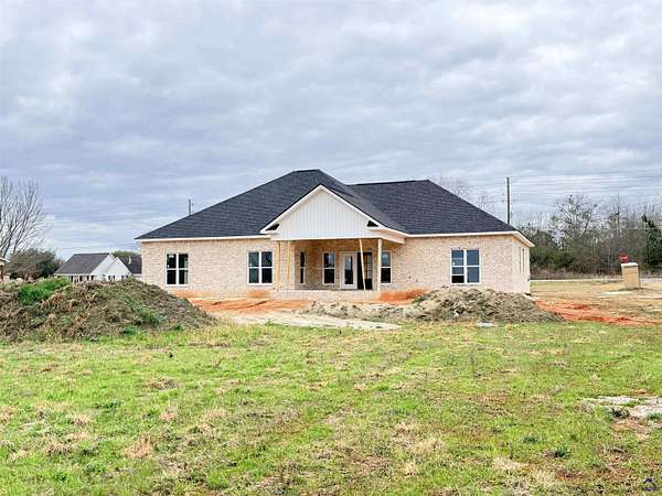 The Tuxedo House - Coming Together Beautifully This stunning four-sided brick new construction is still in progress -- but once complete, it is going to be a showstopper. The vision is bold, timeless black-and-white elegance with elevated designer touches throughout. Once finished, you'll pull up to a classic black front door and step inside to a dramatic black-and-white interior palette. Cabinets are scheduled to be installed this week, and that's when the personality of this home will really begin to shine. The open floor plan will feature an electric fireplace as a focal point -- accented by black ceiling beam in the living area for added depth and architectural character. The primary bedroom will also feature a black beam, creating a dramatic, upscale feel that carries the design theme throughout the home. The kitchen is designed to impress with granite countertops, a pot filler, and striking black-and-gold fixtures that add just the right amount of bold luxury. LVP flooring and tile throughout mean durability and beauty -- no carpet. There will also be a built-in mud bench for functionality without sacrificing style. And one of the most incredible features? Every bedroom will have its own full-size bathroom -- plus an additional half bath for guests. This home is being thoughtfully designed to feel custom, dramatic, and unforgettable. Some Amazing Things About This House:- Four-sided brick exterior -1.65 acre lot -3-4 bedrooms (bonus room could be bedroom/sewage tank is for 4 bedrooms) -Every bedroom has its own full-size bathroom (3.5 total bathrooms) -Additional half bath for guests -LVP flooring and tile throughout -Open floor plan -Modern electric fireplace -Black ceiling beams in living area -Black ceiling beams in primary bedroom -Granite countertops -Pot filler -Built-in mud bench -Black front door (planned finish) -Black and white cabinetry (installing this week) -Gold and black fixtures -Stunning black-and-white "Tuxedo" design theme -No city taxes -No HOA