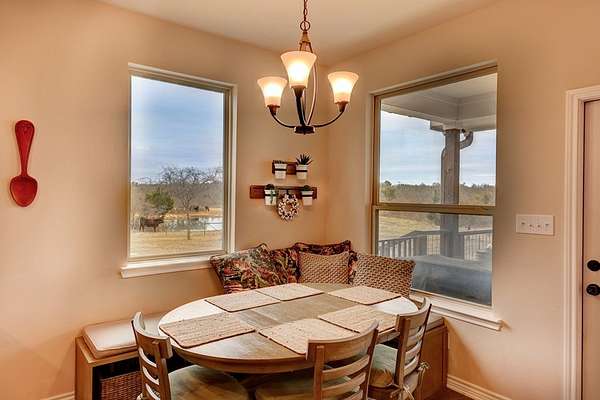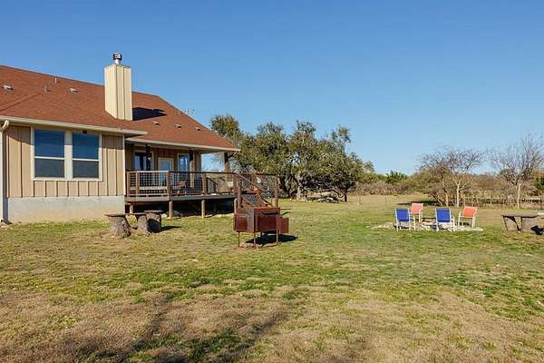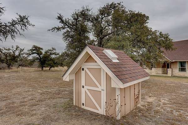 Welcome to your private Hill Country retreat! This stunning 3-bedroom, 2-bathroom home, built in 2020, is nestled on 50 acres of rolling land, offering the perfect balance of seclusion and modern comforts. With 48 acres AG exempt, this property is ready for livestock, hunting, or simply enjoying the abundant wildlife. The home features an open-concept living area with high ceilings and large windows that let in plenty of natural light. The well-appointed kitchen is ideal for both everyday living and entertaining. The master suite offers a peaceful escape, complete with an en-suite bath and walk-in closet. Outside, the possibilities are endless. Enjoy the beauty of your expansive property with 2 acres around the home fully fenced. The new fence on 3 sides of the property ensures privacy and security. For hunters, two deer feeders and two hunting blinds convey, making it easy to start enjoying the abundant wildlife right away. This property is a haven for those looking to escape the city, with NO HOA restrictions. The two outbuildings give plenty of space for storage. Whether you're looking for a peaceful getaway or a hunting paradise, this property has it all.