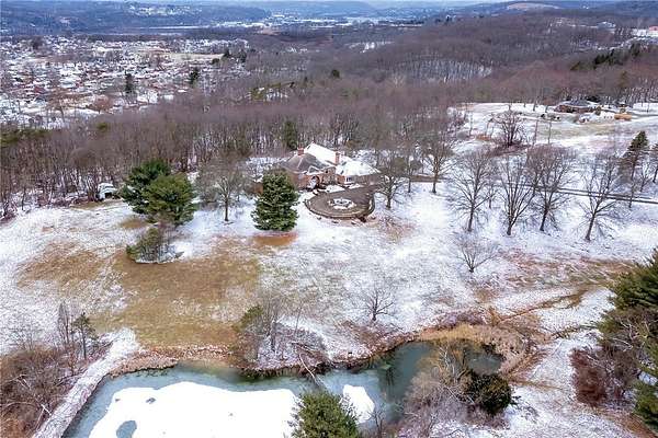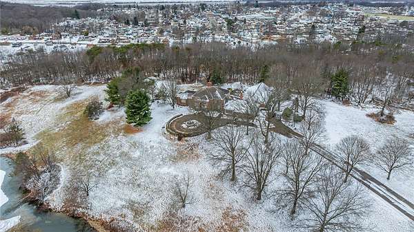 AN EXTRODINARY STATELY PROPERTY CUSTOM BUILT BY CORDES HOMES, GRACEFULLY SET UPON 11+ ACRES--AN ARRIVAL YOU WILL NEVER FORGET! A PICTURESQUE PRIVATE LAKE, A SWEEPING GOVERNOR'S DRIVE WITH TRANQUIL FOUNTAIN. MANICURED GROUNDS DESIGNED FOR BOTH ELEGANCE AND PRIVACY! INSIDE, TIMELESS ARCHITECTURE REIGNS: SOARING CEILINGS IN THE GENEROUSLY SIZED FAMILY ROOM AND GREAT ROOM. BRICK AND STONE FIREPLACES ANCHORING EACH SPACE WITH WARMTH AND GRANDEUR. 4 SETS OF FRENCH DOORS OPENING TO THE REMARKABE GROUNDS. A DRAMATIC GRAND ENTRY WITH A SOLID HARDWOOD WINDING CUSTOM STAIRCASE. MONSTER FIRST FLOOR OWNER'S SUITE, SLATE ROOF, AND THREE CAR ATTACHED GARAGE. A STRIKING INDOOR POOL WITH SOARING CEILING AWAITS RESTORATION-READY TO BE REIMAGINED INTO A SHOWPIECE ONCE AGAIN. OUTDOOR WATER SYSTEM. HORSES AND LIVESTOCK PERMITTED...PERFECT SETTING FOR FUTURE BARN, STABLE, ARENA AND MORE!! THIS IS NO COOKIE-CUTTER!! THIS IS NOT ORDINARY. THIS IS A STATELY OPPORTUNITY TO OWN SOMETHING TRULY EXCEPTIONAL!! DISTINGUISHED PROPERTIES LIKE THIS RARELY APPEAR!! MINUTES FROM CRANBERRY.