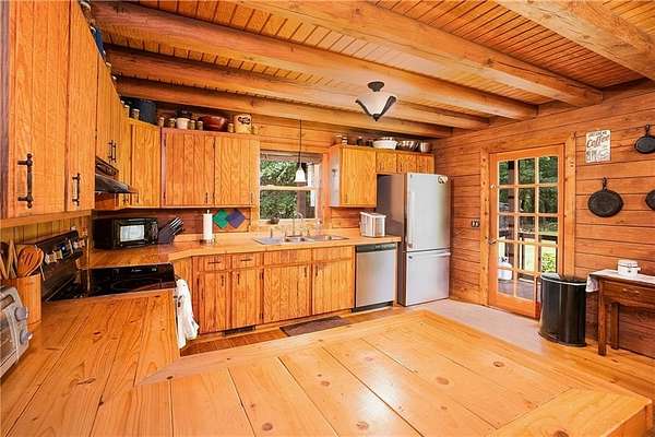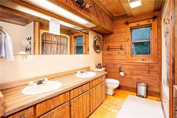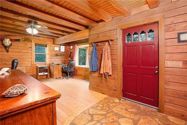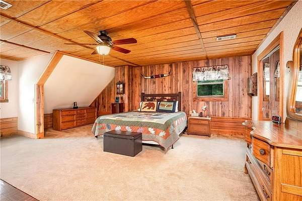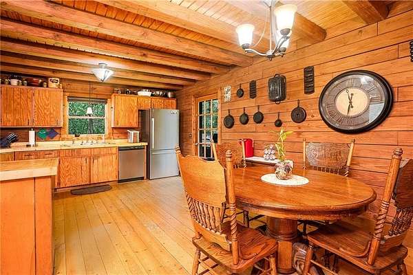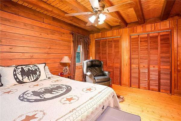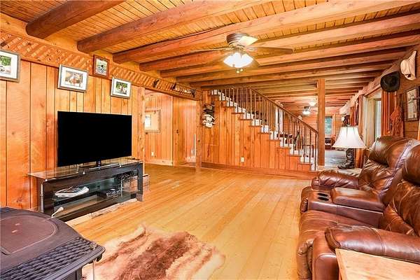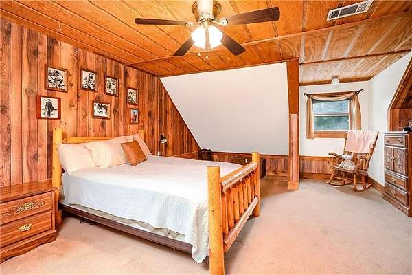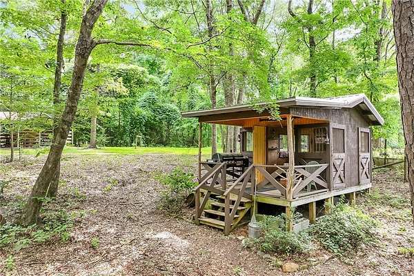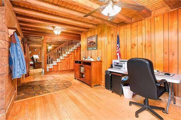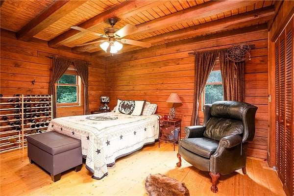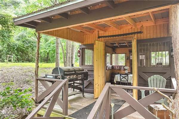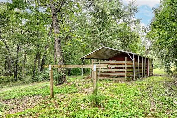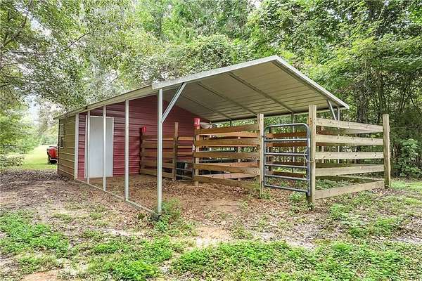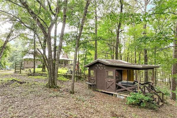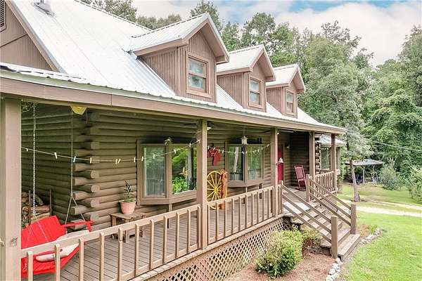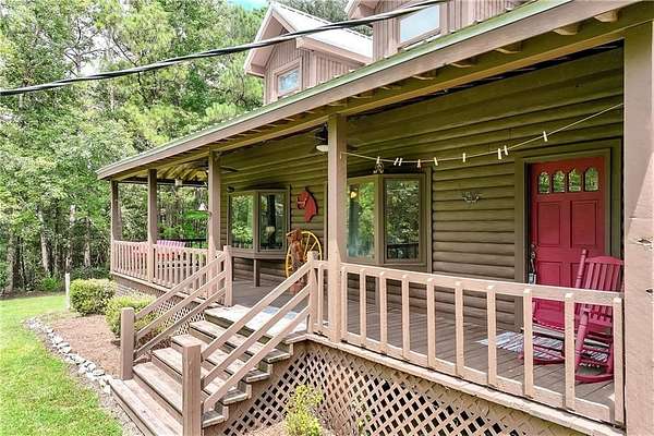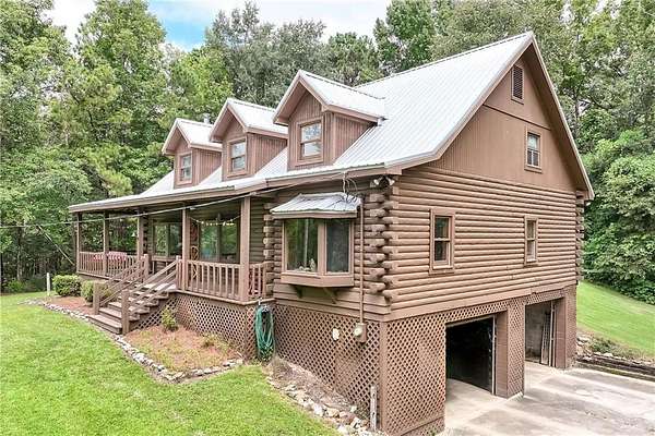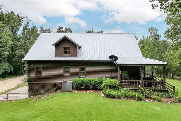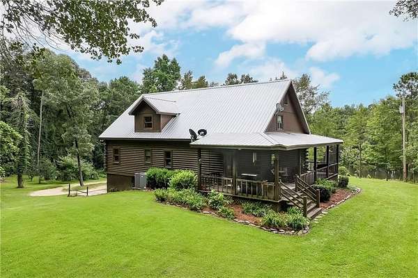 Have you been searching for the perfect homestead with the convenience of being just minutes from Auburn and Opelika? This 16-acre mini-farm offers the best of both worlds--peaceful country living and easy access to town. The property features a 2-acre pond stocked with bream, bass, crappie, and a few catfish. Wildlife is abundant, with deer, turkey, and seasonal geese and ducks calling the pond home. A charming "hunting house" or she-shed overlooks the land and pond, providing a serene spot to relax or take in the view. The 2,500 sq. ft. log home is a classic beauty with a three-quarter wraparound porch, complete with a corner swing for the best vantage point over your property. Inside, pine floors, wood walls, and rustic accents create a warm, inviting atmosphere. The main level features a bedroom and full bath, while upstairs offers two large bedrooms that share a hall bath. The basement provides parking for two vehicles, a heated and cooled safe room, and ample storage. Outdoor amenities abound--a small orchard with blueberries, apple trees, muscadines, and persimmons; a large pole barn; a second barn with two horse stalls and a tack room; an RV hookup with water and 50-amp service; an additional metal carport; and nearly complete fencing. The home also includes indoor/outdoor speakers, perfect for entertaining or enjoying music while you work outside. Recent updates include a metal roof and exterior paint in 2020, and a new HVAC system in 2019. Whether you dream of raising animals, growing your own food, or simply enjoying the sights and sounds of nature, this property offers a rare blend of functionality and charm. Come see this unique property for yourself and experience the beauty, privacy, and lifestyle it has to offer. Your homestead dream could start here.