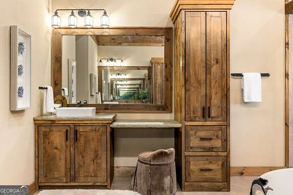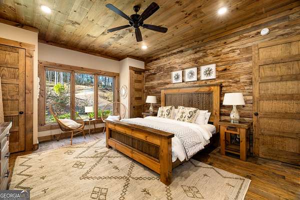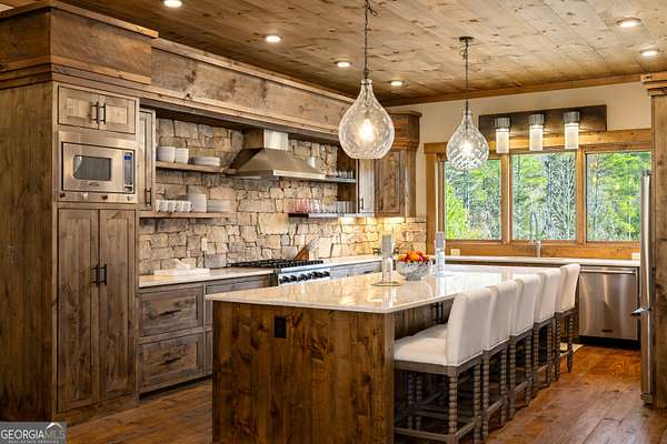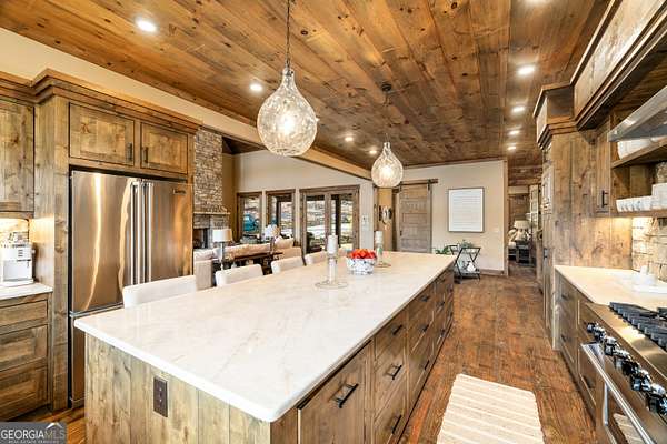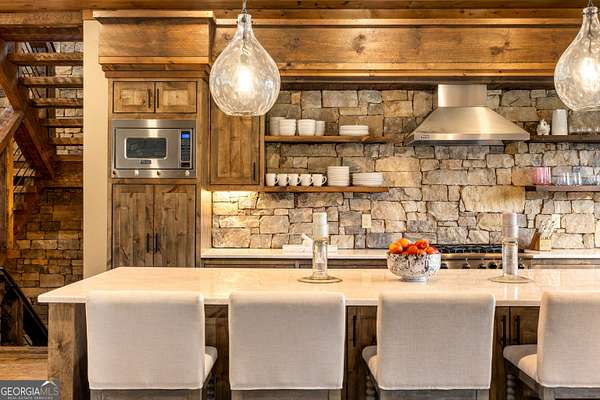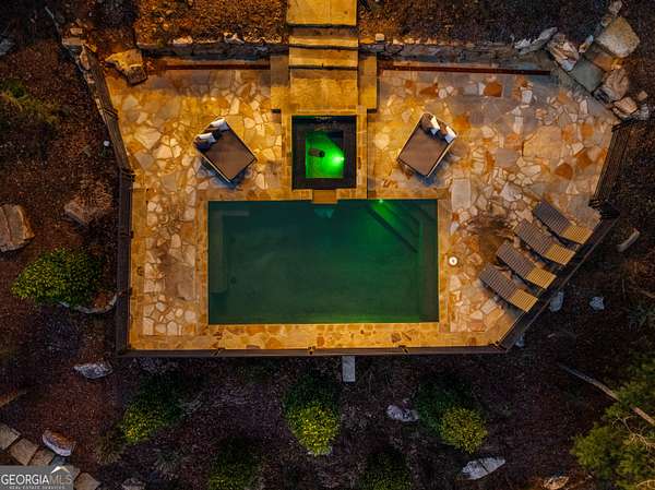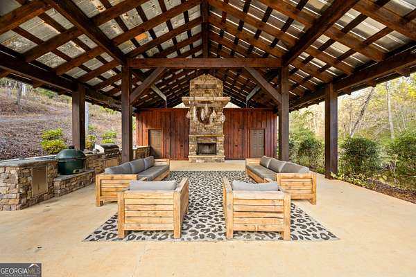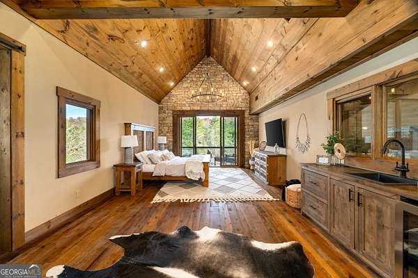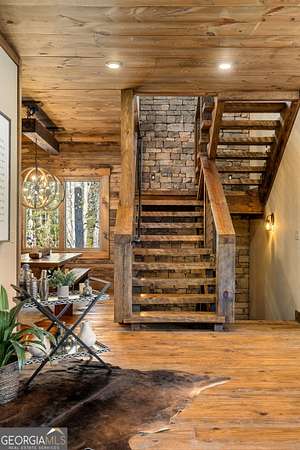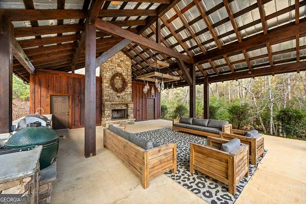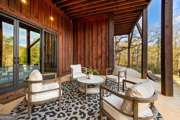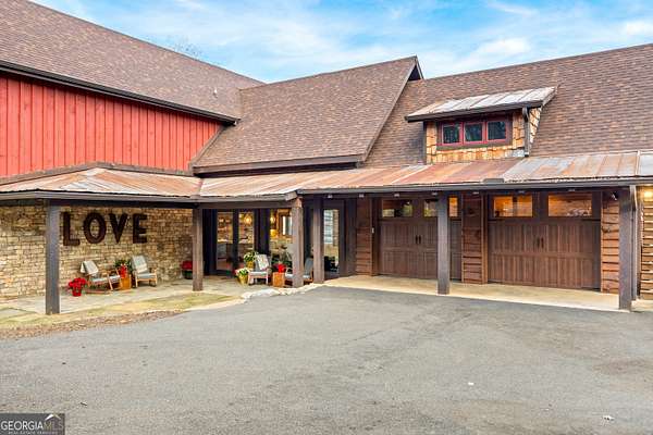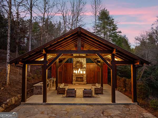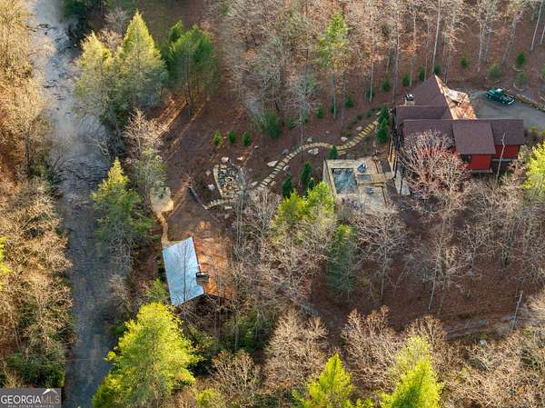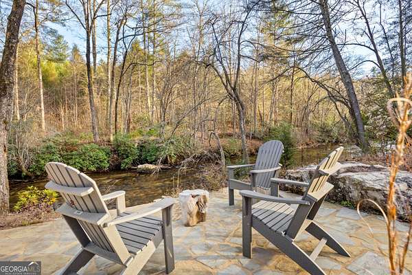 Welcome to a luxury creekside sanctuary in the North Georgia mountains, where refined design meets the natural beauty of Fightingtown Creek. Crafted by acclaimed builder Keith Sumner, this stunning residence offers a true resort-style experience. Inside, the expansive living room showcases towering 25-foot ceilings, elegant fireplaces, custom lighting, and hardwood floors, creating a grand yet inviting space. The chef's kitchen is thoughtfully appointed with quartzite countertops, Viking appliances, and a professional gas range, flowing seamlessly into the outdoor entertaining pavilion equipped with commercial-grade appliances and a Green Egg grill. The primary suite is a private retreat featuring custom closets, a beverage fridge, and a luxurious spa bath with a two-person soaking tub and dedicated vanity space. A private balcony invites you to unwind while overlooking the tranquil creek below. Designed for entertaining, the outdoor amenities include a heated saltwater pool with jacuzzi and a remarkable 2,100 sq ft waterfront pavilion-an ideal setting for gatherings large or small. With guest-friendly accommodations, a service drive for easy access, and a versatile insulated two-car garage, this exceptional property offers a luxury mountain escape and a proven short-term rental opportunity. Currently operating as a successful short-term rental, the home is offered turn-key furnished, allowing the next owner to step directly into an established income-producing investment or immediately begin enjoying the property without the need for additional setup.