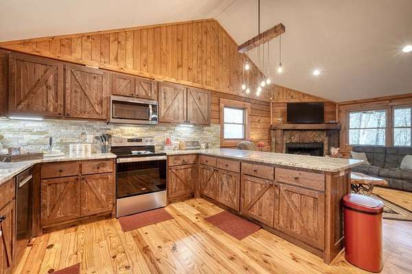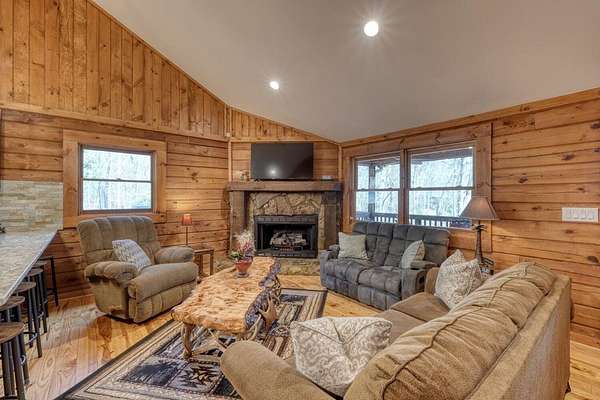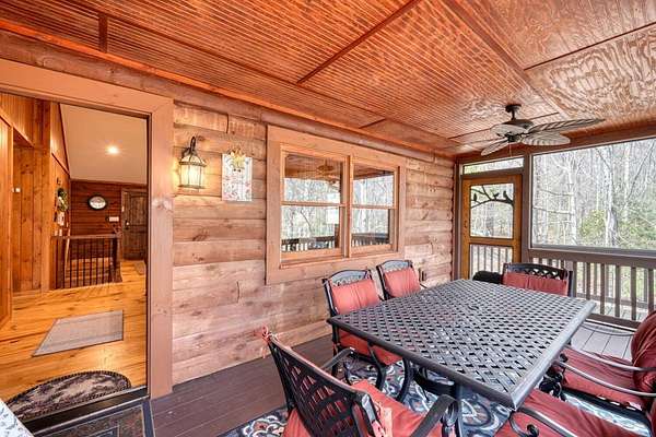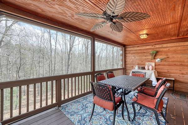 INCOME PRODUCING true log cabin on 5+/- acres in the beautiful North GA Mountains! Keep as a short term rental or make it your primary home or weekend getaway! The choice is yours! No restrictive covenants! Very private with gated driveway. Home has been completely remodeled in 2022 including metal roof, new HVAC including ducting, 4 bedroom septic system, electrical, plumbing, cabinets, countertops, appliances and a new pressure tank for the private well. Front porch wraps around the side of the house to a relaxing screened-in porch overlooking private yard with fire pit. There's a 20'x20' barn/workshop area as well as a pole shed that you could park under. This is a great mountain cabin in the desirable Morganton, GA area. A short drive to the historic Blue Ridge Scenic Railway and the popular downtown. The Appalachian trail and the Benton MacKaye Trail are an easy drive away, as well as the Toccoa river, great for boating. Fannin County is also home to miles of mountain biking trails, horseback riding, golfing and much more! Come take a look today!