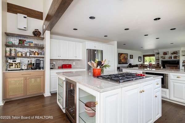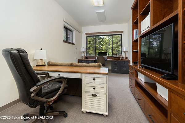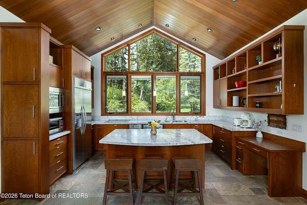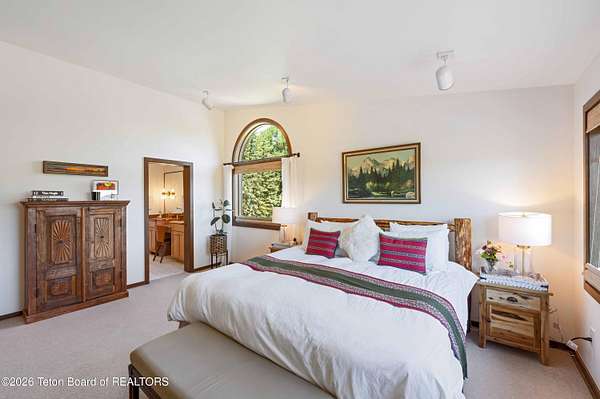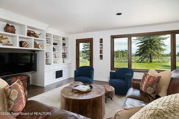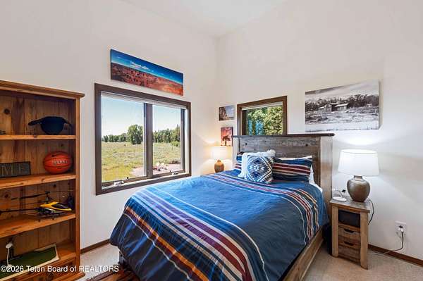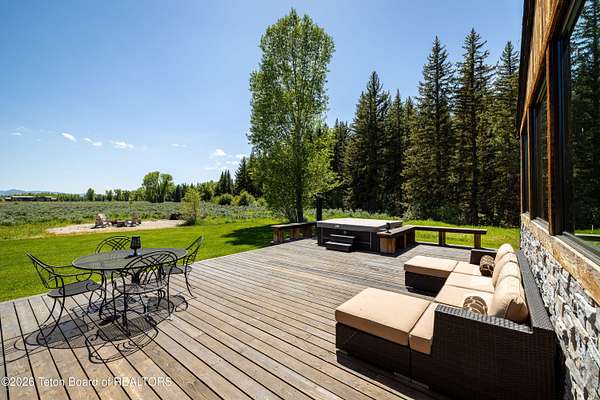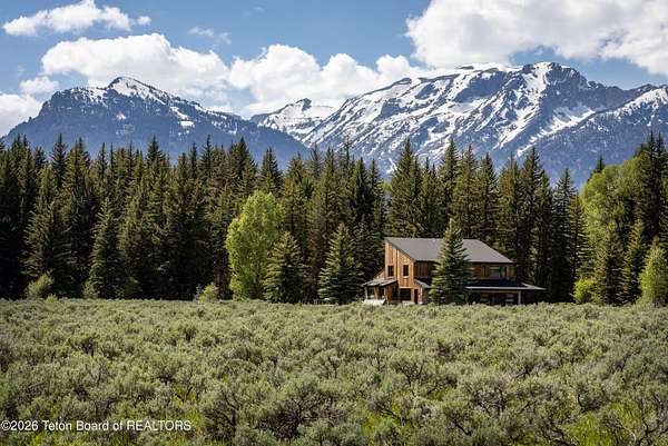 This property is a Jackson Hole 5.15 acres retreat in the coveted Solitude subdivision with main house, guest house, barn, and Snake River access. The main home, fully remodeled in 2025, features vaulted ceilings, expansive windows showcasing panoramic views of Sheep Mountain, Jackson Peak, and Snow King. The 3-bed, 3-bath layout includes an office and a sun-drenched south-facing deck, perfect for outdoor dining or evening relaxation. A separate guest house, a rare feature in this area, is privately situated on the lower portion of the property and connected via a private trail or secondary driveway, provides a peaceful stay for visitors. The custom built 2,500 sqft. barn includes a heated workshop and versatile space for creative studios, offices, recreational storage or horses. Enjoy private community access to the Snake River, ideal for fishing, kayaking, or peaceful walks along the levee. Set in a horse-friendly community with plenty of space to ride or roam, along with open views, and mature trees, this property offers a flexible layout for a range of lifestyles. Bordering a protected wildlife corridor, the setting offers serene encounters with native wildlife, open skies, and a true sense of the West. A rare blend of privacy, modern design, and raw natural beauty - this is Jackson living at its finest.