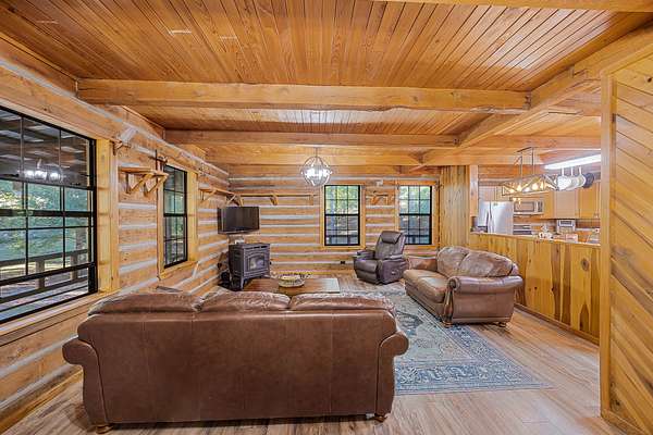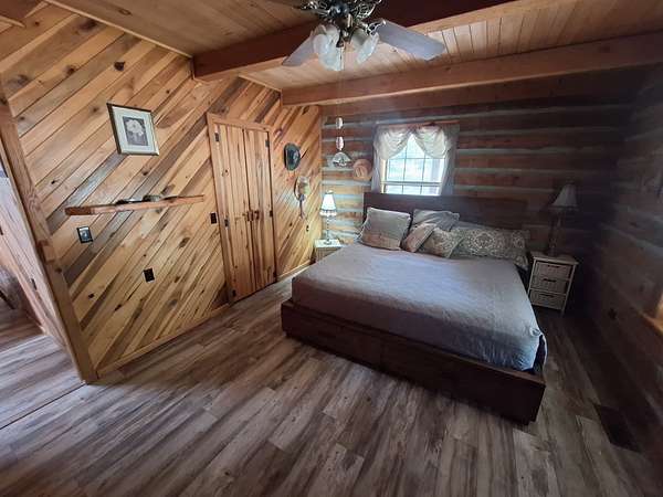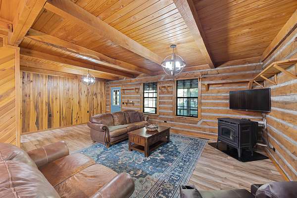 Nestled in the serene countryside, this delightful two-bedroom, two-bath log home offers a perfect blend of rustic charm and modern comfort. With 2.64 +/- acres of partially wooded land, this property provides a peaceful escape while being conveniently located within walking distance to Kentucky Lake and nearby boat ramps.