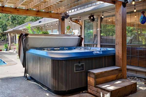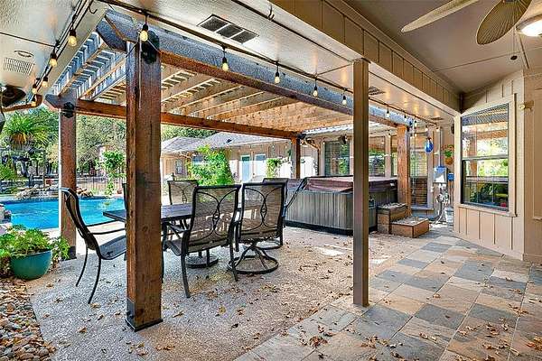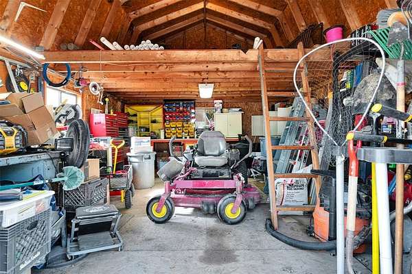 The exterior is packed with features designed for comfort, recreation, and functionality. Enjoy your own backyard oasis with a sparkling pool, spa, and hot tub -- ideal for summer gatherings or quiet evenings under the stars. A firepit area provides the perfect spot to unwind with friends and family. There's also a pool house for added flexibility, three storage buildings for all your tools and equipment, and plenty of space for a workshop or hobby area.