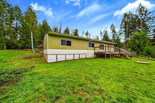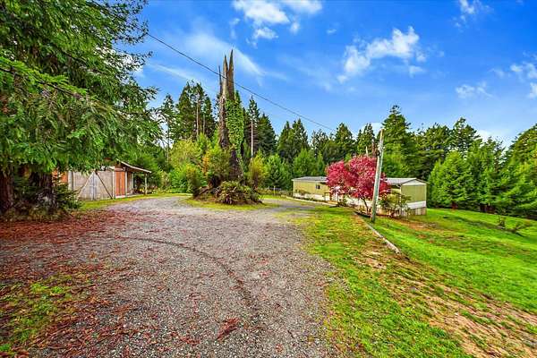 Discover peace, privacy, and usable acreage in this beautifully remodeled 1974 mobile home situated on 2.43 fully fenced private acres in desirable Bayside. This property offers the perfect blend of comfort, nature, and functionality. Home Features 2 bedrooms, 2 bathrooms Updated and remodeled interior Light-filled living room with access to a large view deck overlooking the land and surrounding redwoods Functional kitchen layout and comfortable living spaces Land & Exterior Useable 2.43 acres-ideal for gardening, animals, or hobby farming Surrounded by Bayside's iconic redwood views Fully fenced property, offering privacy and security 560 sq ft detached garage for storage, workshop, or parking Open space with multiple potential uses