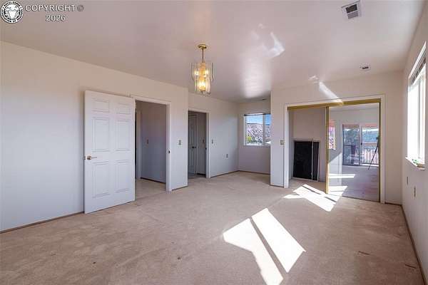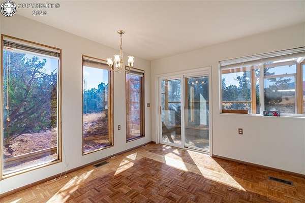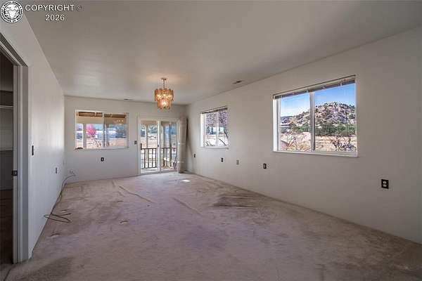 Spacious and Unique Home with Spectacular Mountain Views and currently getting fresh exterior paint. Discover this one-of-a-kind property set on 2.35 acres with sweeping mountain views, including iconic Pikes Peak. This large and distinctive home features two expansive upper-level bedrooms, each with its own 5-piece ensuite bath and private sitting area - essentially offering two master suites with flexible space that could serve as additional bedrooms, offices, or retreats. The main level offers an abundance of living space, including both a formal living room and a large family room ideal for gatherings and entertaining. A bright, enclosed south-facing patio provides excellent natural light and a perfect spot for relaxation or recreation. During the warmer months, enjoy your very own enclosed pool for private leisure and entertainment. An oversized four-car garage offers ample space for vehicles, hobbies, and storage. With its spacious layout, unique design, and exceptional views, this home is truly one to experience in person to appreciate all it has to offer.
