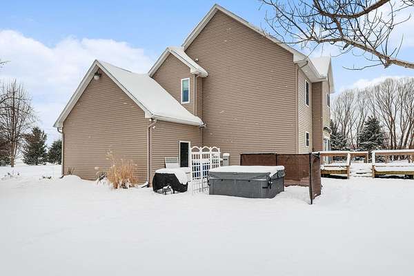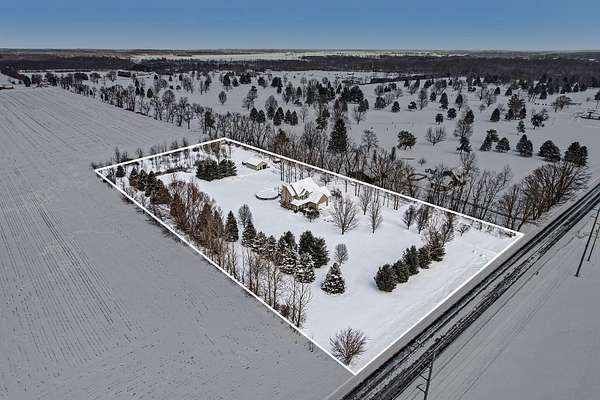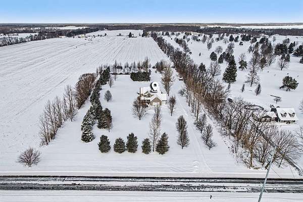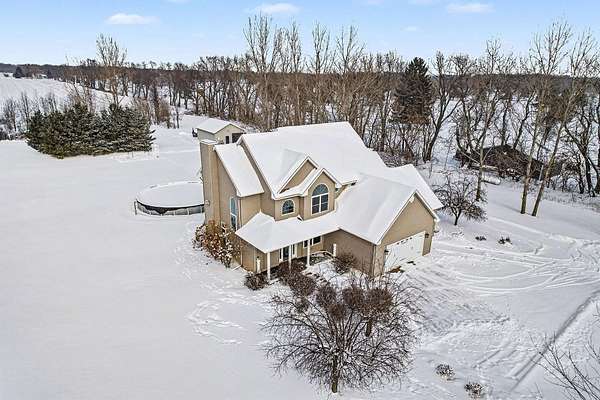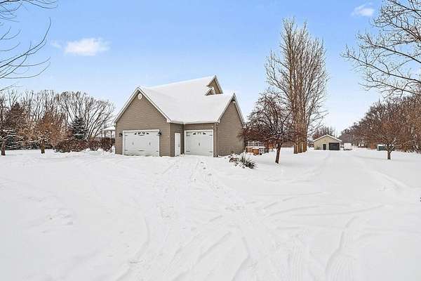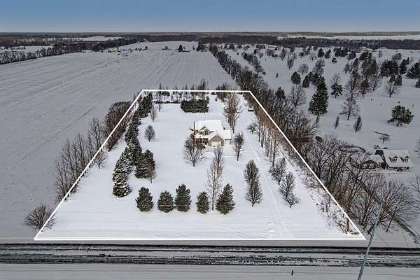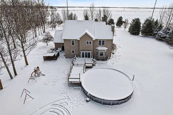 This five-acre property offers privacy, space, and a layout that works for everyday living and entertaining. The home sits fully surrounded by mature trees, creating a secluded setting with open views of the surrounding farmland. It's located in the award-winning Schoolcraft School District, less than a five-minute drive to Vicksburg Schools, and just minutes from US-131 for quick access to Portage, Kalamazoo, and nearby communities. The home includes four bedrooms, three and a half bathrooms, a finished basement, a three-car garage, an above ground pool, and a pole barn, providing flexibility both inside and out. The kitchen features granite countertops, maple cabinetry, hardwood flooring, and dual sinks, making it functional for larger households or gatherings. Main-floor laundry and large windows throughout the home capture panoramic views of the property and surrounding fields. The upper level is anchored by a spacious primary suite with a double vanity, jetted tub, separate shower, and walk-in closet. Three additional bedrooms and another full bathroom complete the second floor. The lower level adds valuable finished space and storage, along with a full bathroom with a tile shower and an optional fifth bedroom or home officeideal for guests, remote work, or multi-purpose use. Outside, the acreage is completely tree lined, including apple trees, offering both privacy and usable outdoor space. The pool, installed in 2023, is well positioned for summer enjoyment. The 24x32 pole barn includes 220V electric and a frost-free water hydrant, making it suitable for equipment, hobbies, or storage. A whole-house Generac generator provides added reliability year-round.