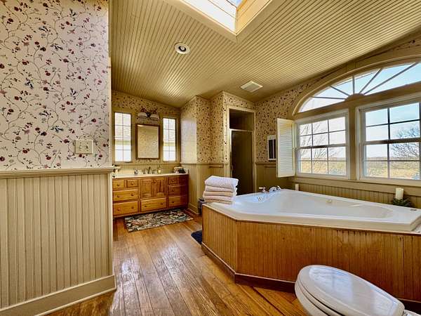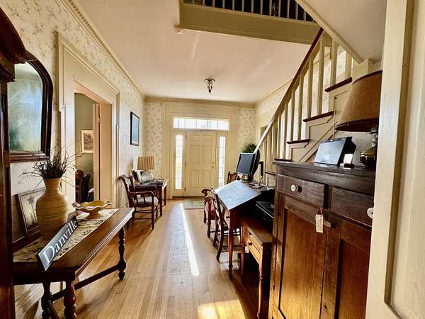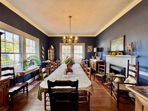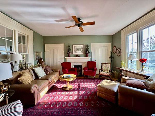Extraordinary 25.94-acre estate featuring a fully renovated 1860 Colonial farmhouse with 5 bedrooms and 4.5 baths, blending historic charm with modern updates. Attached like-new 3-bedroom, 2-bath living quarters offer ideal space for extended family, guests, or owner separation. Property also includes two guest cabins, each with 2 bedrooms, 1 bath, kitchen, and living area. Previously operated as a successful wedding and event venue, including a separate event building with kitchen, bathroom, and seating for 30+ guests. Two barns and three silos add charm and utility. Select furnishings may remain. Ideal for private estate, multi-generational living, short-term rental income, or venue investment.