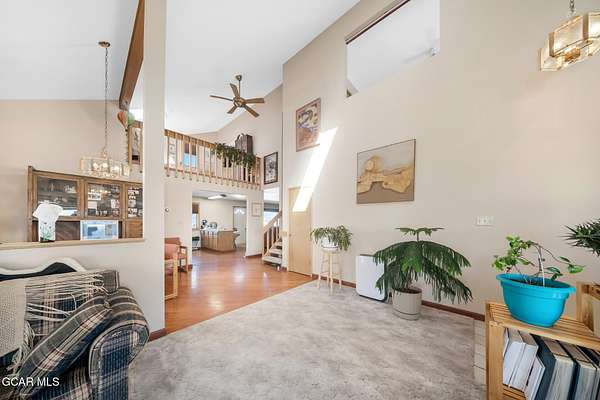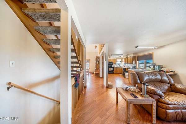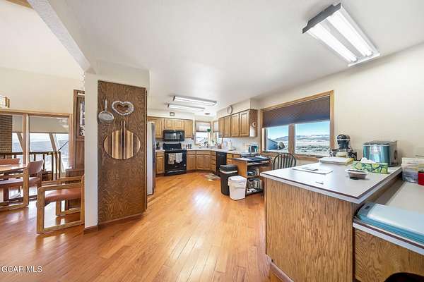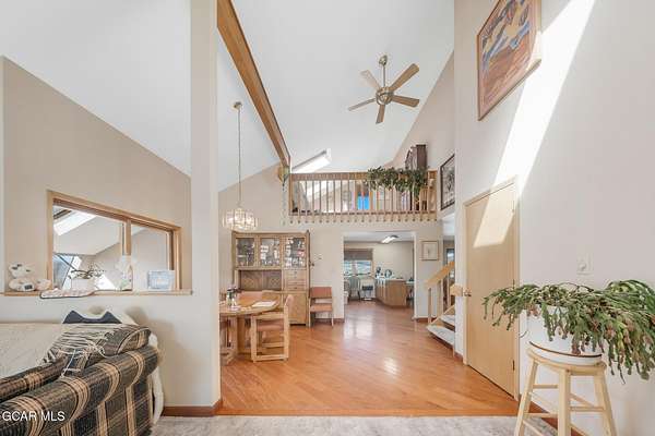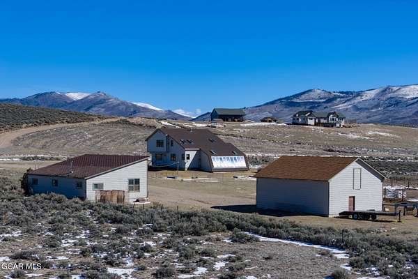 This one truly has it all, location, acreage, and incredible mountain views. Situated on 40 private acres, this property offers the perfect balance of seclusion and convenience, just a short distance to town and everyday amenities. Step inside to a warm and inviting layout featuring an open-concept kitchen and living area, complete with a breakfast bar, separate dining room, and large windows that capture breathtaking mountain views in every direction. The brick mantel fireplace creates a cozy focal point, while the sunroom provides passive solar and is the perfect space to relax and enjoy the beauty of every season. This spacious home offers 3 bedrooms, 2.5 bathrooms, and a dedicated office, along with a large downstairs game room perfect for entertaining and additional living space. The primary suite is a standout, featuring a bonus loft and stunning vaulted ceilings that overlooks the main floor; adding both character and versatility. Outside, the property is set up for both recreation and functionality. A large barn with tack room and stalls is ready for your animals, while the detached 3-bay garage offers ample storage for vehicles, equipment, and all your mountain toys. There is also a convenient two-car attached garage. With easy access to public land directly from the property, you can enjoy endless outdoor adventures right from your doorstep. The usable acreage provides plenty of room to expand, explore, or simply enjoy the peaceful surroundings. A rare opportunity to own a versatile mountain property with space, views, and unmatched access to the outdoors.