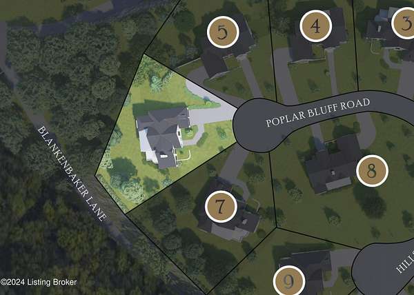 LOT 6 / Experience the beauty and tranquility of Poplar Hill Bluff, an intimate community where nature's splendor meets thoughtful stewardship, and every detail is designed to enrich your living experience. Perched on a hill, surrounded by mature hardwoods and native vegetation, ten custom-built homesites designed by Doug Schmitt await. Each home features harmonious architecture, timeless curb appeal and sustainable design elements that enhance both beauty and function. Beyond the threshold, each home plan has effortless attention to detail and a seamless flow from room to room, greeting you with a mix of open and private spaces, along with an abundance of natural light. Located at the crux of the highly sought-after Indian Hills and Riverwood neighborhoods, Poplar Hill Bluff provides residents with unparalleled access to local amenities and attractions. All construction to be completed by Wilkinson Builders. The basement is unfinished but does have a roughed in bedroom, bath, and masonry fireplace. Prices are subject to change based on material cost. Please contact listing agents for full price range breakdown, additional marketing materials and other questions. Steet names subject to change.