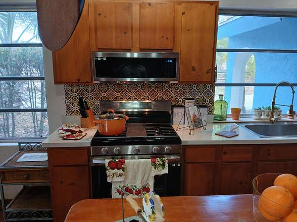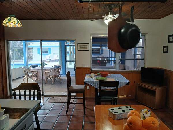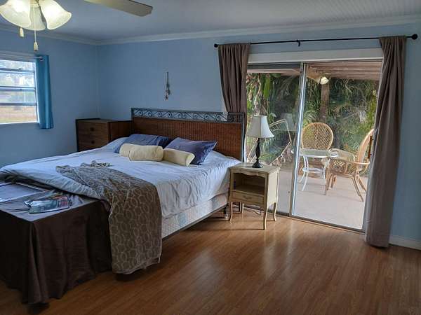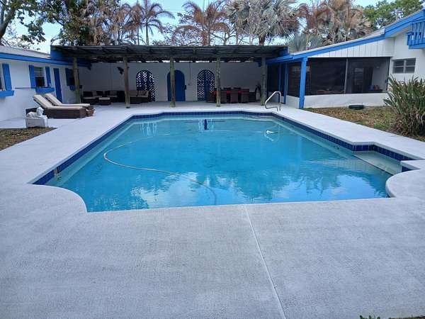 One-of-a-kind 5-acre jewel in desirable Palm City Farms, NO HOA! 3,602-sf CBS with METAL roof over all. Detached 900-sf 4+ car garage. Enjoy family time in your 40x20 enormous swimming pool with giant patio! Main house 2,802-sf, 4br/3ba, tall 14ft wood ceilings, breathtaking stone fireplace, spacious master bedroom with updated master bath, spacious kitchen with high-end brand-new stainless-steel kitchen appliances and lots of storage. New salt-water pool pump, updated well-water system, new water heater, and fresh interior-exterior & pool patio paint. 800-sf Guest house has 1br/1ba. 4-acre cross-fenced back pasture with 2-gated entrances, corner lot. Over 200 palm trees. Add a horse barn, bring all your toys. Furniture negotiable. Enjoy a