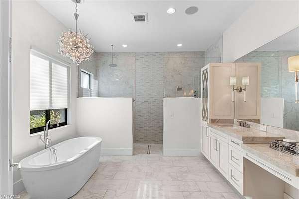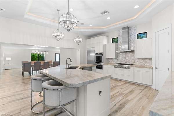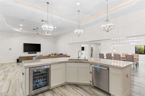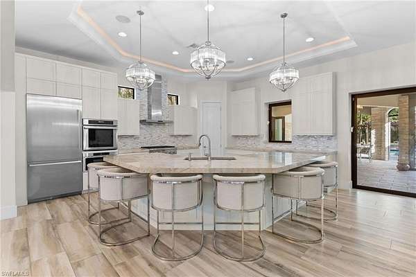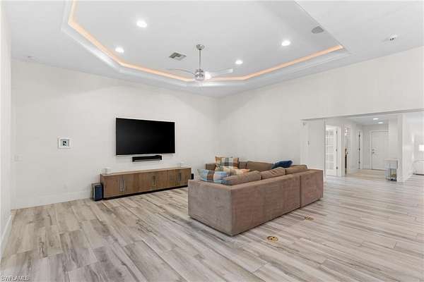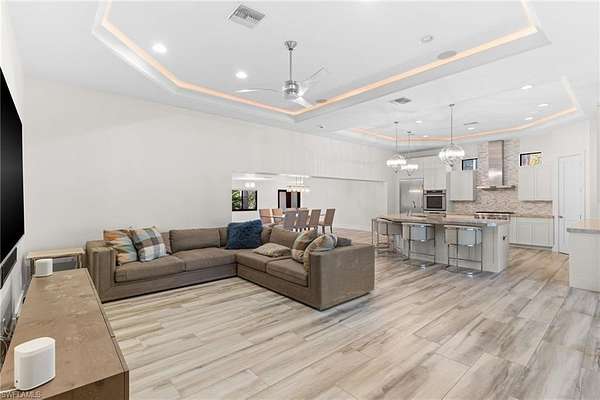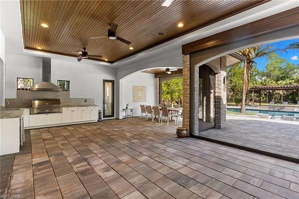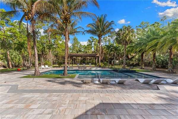 Experience a new level of private luxury living on 2.27 acres in highly desirable North Naples, reminiscent of Pine Ridge Estates or Livingston Woods-yet offered at a fraction of the price. A grand circular driveway framed by lush tropical landscaping welcomes you to this exceptional estate and provides ample parking for guests. The 3,731 sq ft residence offers 5 bedrooms + den and 4.5 baths, showcasing exquisite craftsmanship and high-end finishes throughout. The property is offered unfurnished, allowing the next owner to create their own custom interior vision. The chef's kitchen is designed to impress, featuring Thermador appliances, gas cooking, custom cabinetry, a large island with wine cooler, and striking double-edge Taj Mahal granite countertops-perfect for entertaining and everyday luxury living. Seamlessly blending indoor and outdoor living, the expansive covered lanai extends the living area outdoors and includes a summer kitchen, fireplace, TV, and remote-controlled screens, creating the ideal setting for year-round enjoyment. Step into your private resort-style backyard. The fully fenced property offers exceptional privacy and features a secluded pool, oversized spa, and a tranquil gazebo designed for relaxation, yoga, or meditation. Landscape architects have thoughtfully designed the grounds as a private park, complete with walking paths, exercise areas, a basketball court, and elegant landscape lighting. A whole-house reverse osmosis system provides drinking-quality water throughout the home, supporting a healthy lifestyle. The neighborhood is undergoing a remarkable transformation, with several newly constructed luxury estates-including three recently built mega homes on the same street-signaling strong growth and long-term value for this property. Whether you are searching for a private estate, a multi-generational residence, the freedom of no HOA restrictions, or simply an unbeatable North Naples location close to shopping, dining, and the Gulf beaches-this property truly delivers. Showings are now available-schedule your appointment today and experience this remarkable estate firsthand.