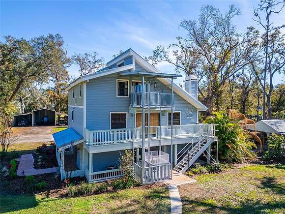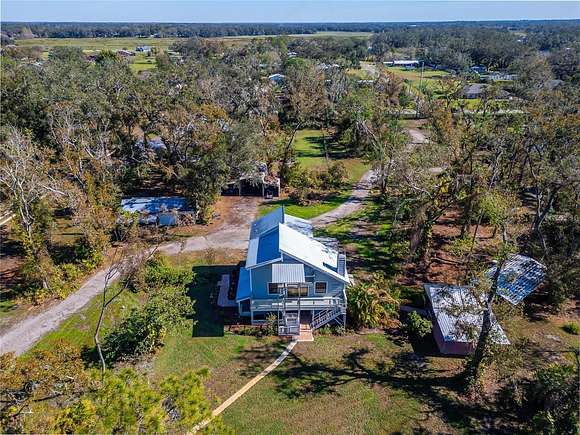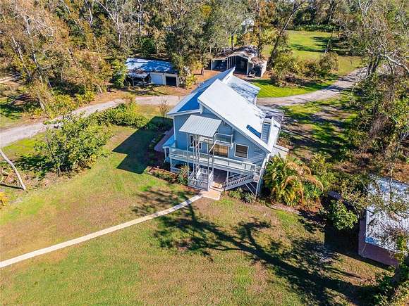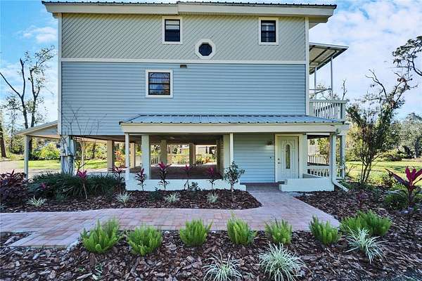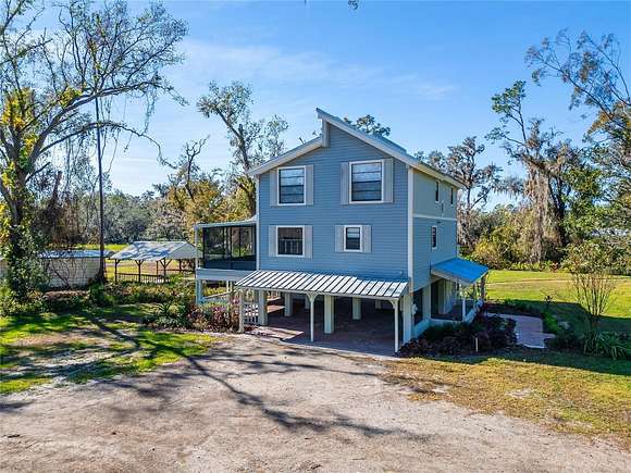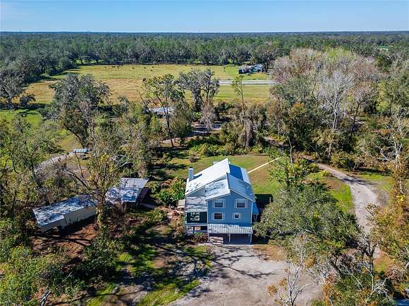 Under contract-accepting backup offers. Welcome to your private sanctuary nestled on 4 expansive acres of tranquil country land. This distinctive three-story stilt home offers a perfect blend of comfort and practicality. With 3 spacious bedrooms, 3.5 bathrooms, and an array of remarkable features, this property is ideal for those seeking a peaceful, yet functional, retreat. The home is constructed with cedar and enclosed with siding. It's built on concrete pillars for a sturdy foundation. Let's not forget to mention, it survived Hurricane Milton without an issue!