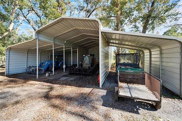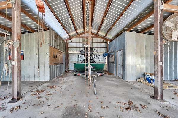 - Garage and Workshops*: In front of the home, you'll find a large garage/shop area, perfect for storing tools, equipment, or creating your own workshop space. Also in front, a spacious 3-bay metal open shed awaits, featuring a 50-amp hookup, to accommodate your RV, boat, or golf cart. In the back, you'll find a big shop that's 40'x60' under roof with an overhead lift system and 2 enclosed rooms for storage. There are also various other sheds on the property for entertaining and storage!
