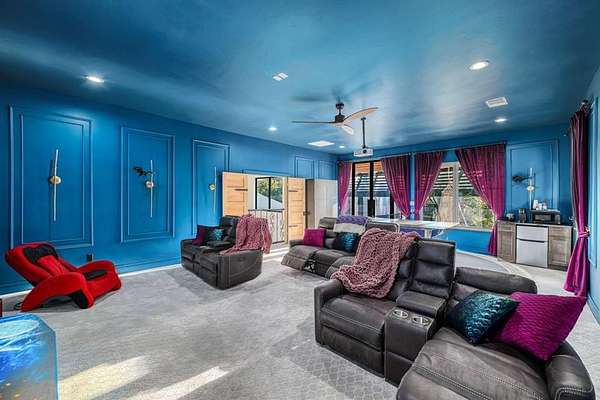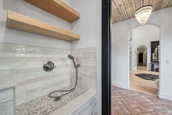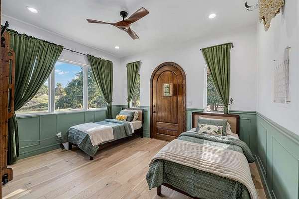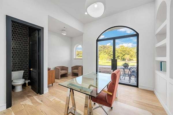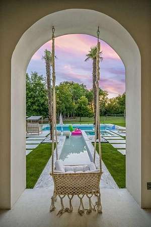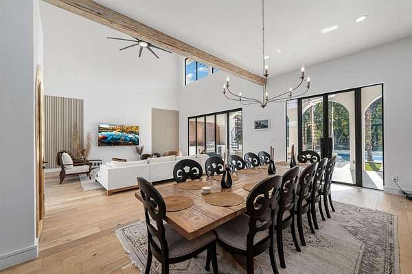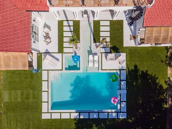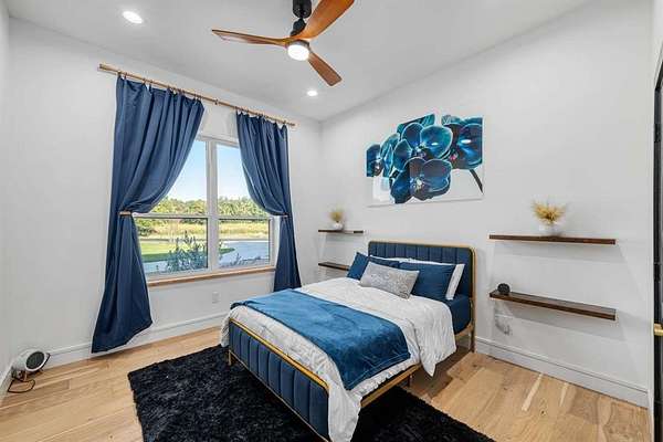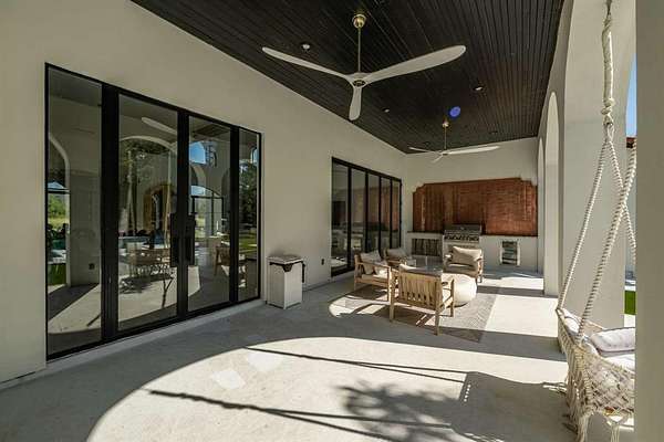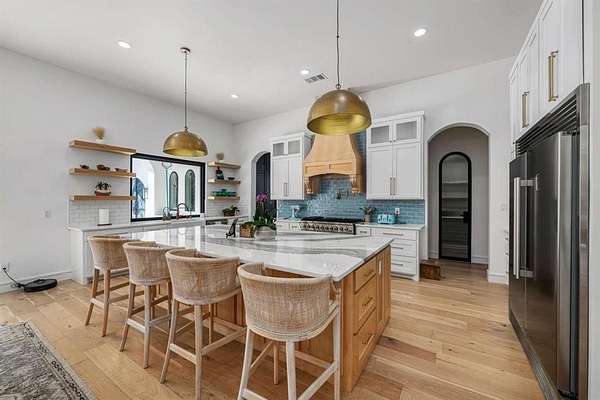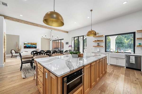 Designed with entertaining in mind, the open-concept floor plan flows seamlessly into a show-stopping outdoor oasis. The expansive resort-style patio showcases a full outdoor kitchen, covered living area, and a spectacular oversized pool — perfect for gatherings or private relaxation. Beyond the backyard, explore your own creek and wooded trails perfect for walking or horseback riding. Includes 3-car garage, high-end finishes, 3 AC units, private well and a rare blend of privacy and convenience near shopping, dining, and highways. Built in 2023, this estate delivers the best of Texas living.