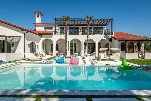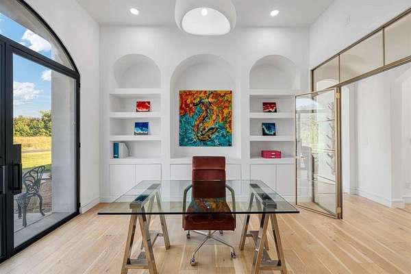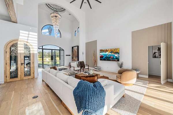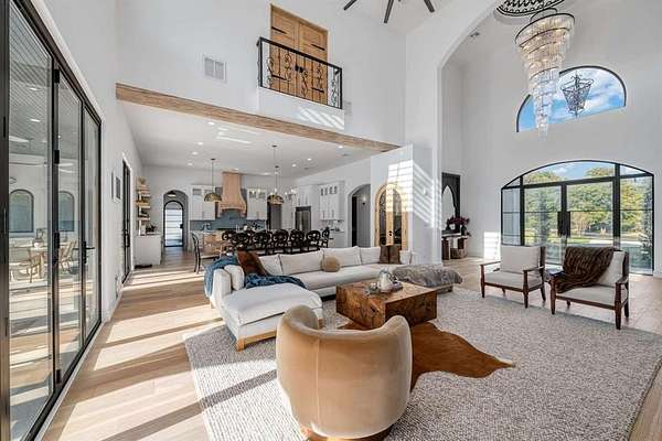 Stunning Mediterranean estate on 4.37 acres with private creek, equestrian & walking trails, and a resort-style pool and spa. Welcome to 4501 Yucca Flats Trail — a private retreat in Fort Worth’s scenic countryside. This 5,109 sq ft custom home offers 6 bedrooms, 4.5 baths, a media room, large home office and a fully mirrored gym.