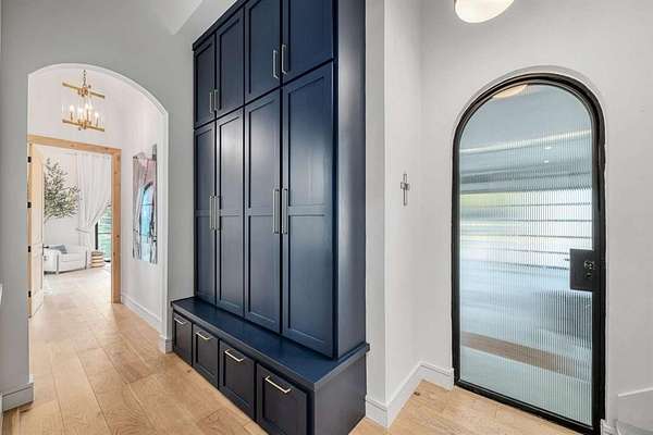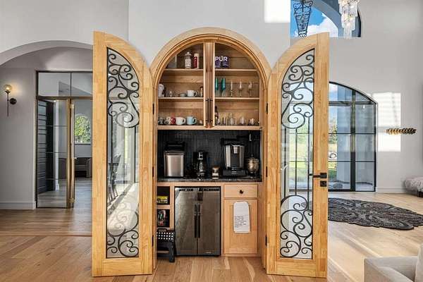 - Built-In Features, Built-In Wine Cooler, Chandelier, Decorative Lighting, Double Vanity, Granite Counters, Multiple Staircases, Natural Woodwork, Open Floorplan, Pantry, Walk-In Closet(s), Wet Bar