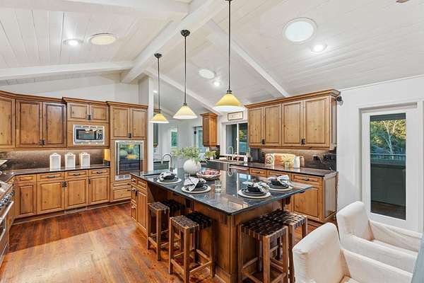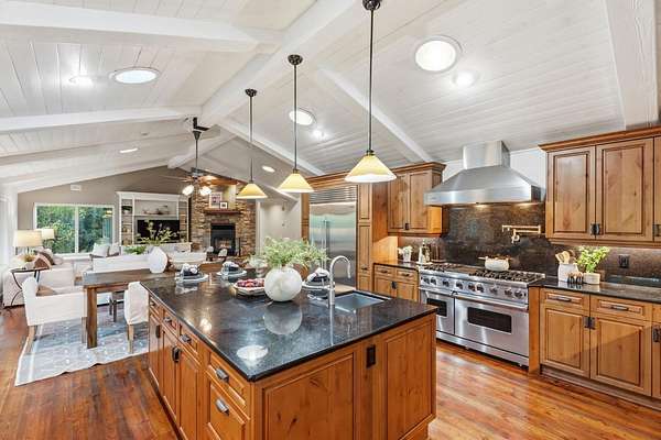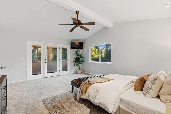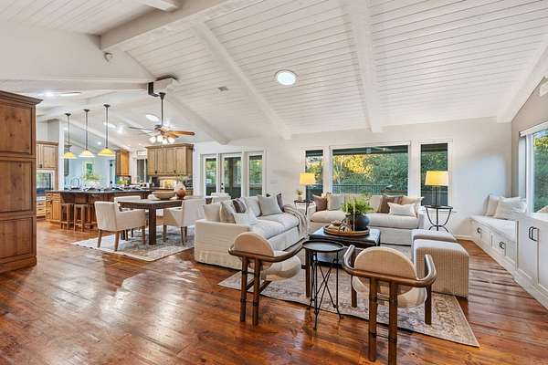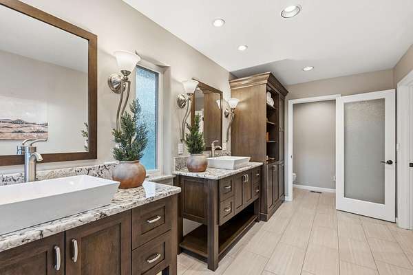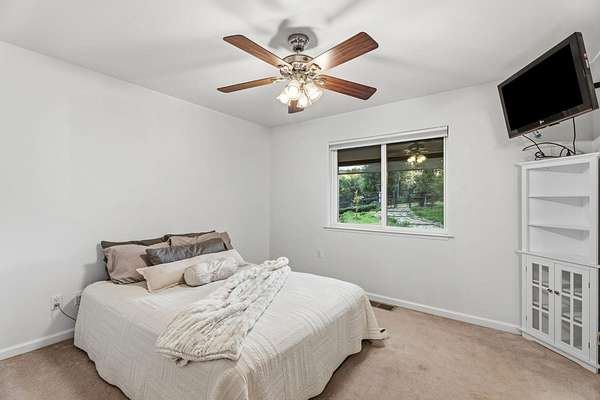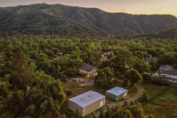 This is the kind of property that truly checks every box, and then some. Custom-built with quality in mind, featuring 2x6 construction on granite for added strength and efficiency, this home was thoughtfully designed from the ground up. A charming front porch with new tile & a custom wood entry door creates a warm, inviting first impression. It sits on 2.57 acres of fully usable land, fully fenced with two private entrances, an automatic solar gate, and is just moments from the golf course. You can hop in your golf cart and be at River Creek Golf Course within minutes, and even enjoy a view of hole #1 right from your home. Inside, the main level offers 3 bedrooms, 2.5 bathrooms, plus a dedicated office right off the entry with two built-in desks. The home has been extensively updated with high-end finishes, including a remodeled kitchen featuring granite countertops, custom cabinetry, Sub-Zero refrigerator, Viking 6-burner range, Viking dishwasher, wine fridge, trash compactor, & Bosch hot water dispenser. The living room features a beautiful floor-to-ceiling stone, wood-burning fireplace, updated in 2017, and skylights that bring in abundant natural light. Off the kitchen is a sunroom leading to a large composite deck with a gas outlet, perfect for entertaining. Nearly every window captures peaceful views. The primary suite offers a spa-like bathroom with oversized walk-in shower & dual shower heads, plus a large walk-in closet with built-ins. Two additional bedrooms down the hall are connected by a Jack & Jill bathroom. Downstairs offers a spacious additional living area with private entrance, half bath, & kitchen setup with sink, disposal, & refrigerator, plus its own temperature control - ideal for a guest suite, mother-in-law setup, game room, or 4th bedroom. There's also a 1,450 sq ft basement with 8-ft ceilings for storage or future customization. The property includes a garden area with irrigation and two fully insulated shops - an uncommon find on a single property. The 40x30 shop includes full RV hookups & a bathroom with shower. The 40x60 shop, built 4 years ago, is fully permitted & equipped with a car lift, scaffolding, air compressor, subpanel, generator inlet, RV plug, & is stubbed for a future bathroom. The fully finished 3-car garage includes a mini split system for year-round comfort . Additional upgrades include a Rinnai tankless water heater, water softener, reverse osmosis system, & solid wood interior doors.Act now, schedule your showing!