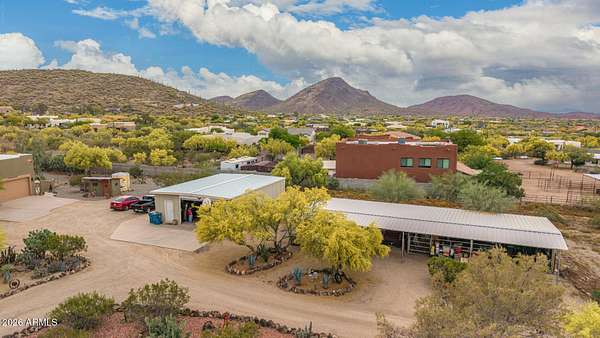 Discover 4.77 acres in the desirable Circle Mountain area with breathtaking 360-degree mountain views and horse privileges. This unique parcel offers a rare opportunity for a custom estate, equestrian use, or future development, with approximately 85% of the land buildable and only a small wash in one corner. Enjoy direct access to outdoor recreation with just a 3-minute horseback ride into Tonto National Forest. The property includes a well, with utilities nearby for added convenience. Adjacent home is also available for purchase, creating the opportunity to own approximately 8.5 total acres together with a 4,200 SQFT residence, 2 large steel building shops, mare motel, and private pool oasis. Exceptional opportunity in a scenic desert setting with endless potential.
