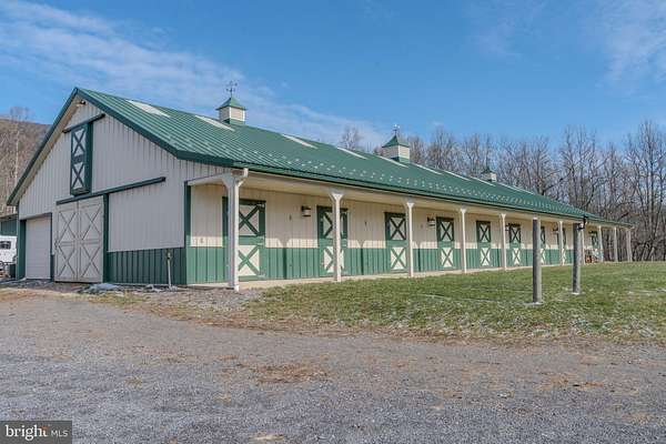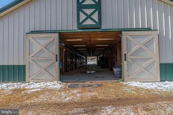 Est $13,362/moRare 204-acre equestrian estate featuring a modern 12-stall horse barn with wash bay, tack room, feed room, and upper-level hay storage, along with 39 acres of pasture divided into six paddock. Training facilities feature an 80'*120' indoor riding arena and a large outdoor arena. The land offers approximately 58 acres of tillable ground and 133 acres of woodland, creating an excellent mix of agricultural use and recreation. Ideal for a private equestrian estate, training or breeding operation, or agricultural investment.