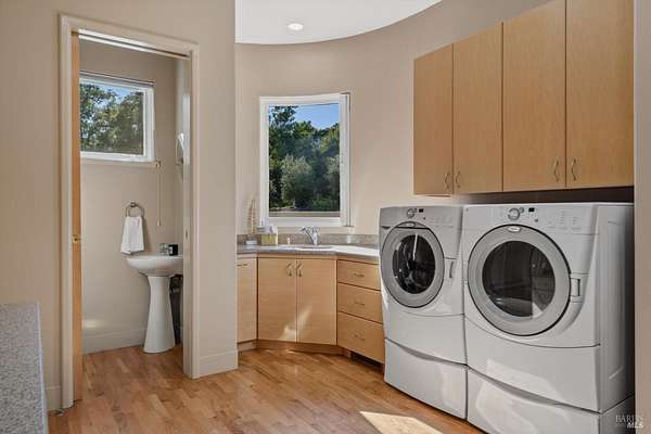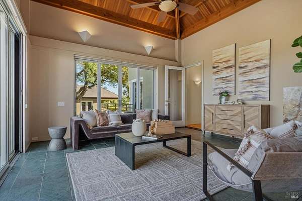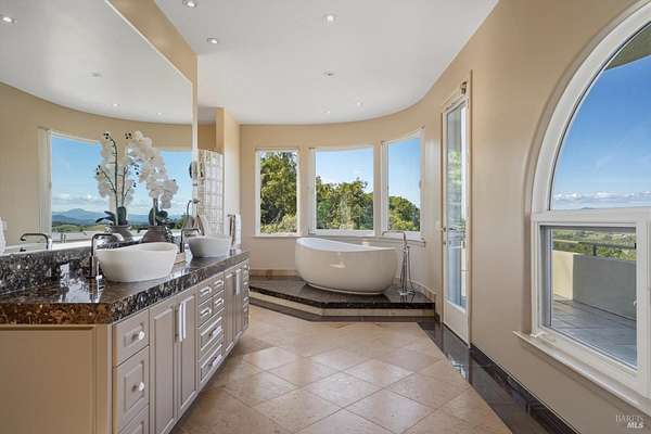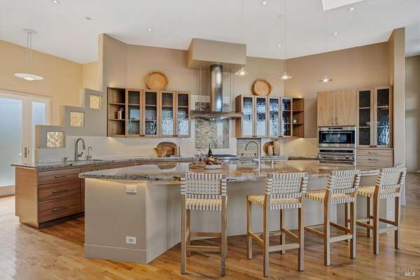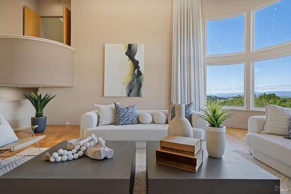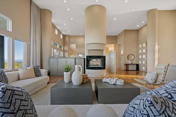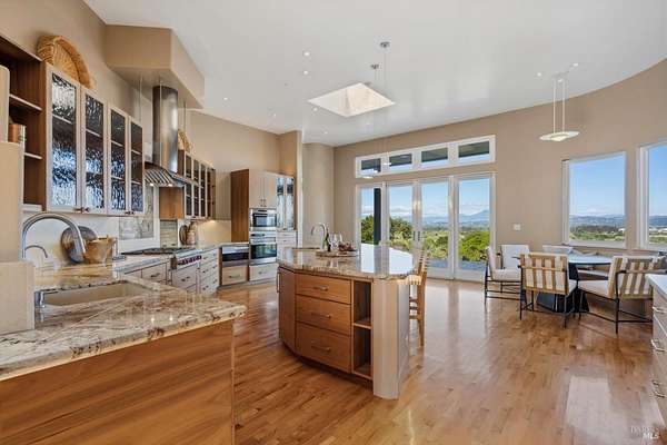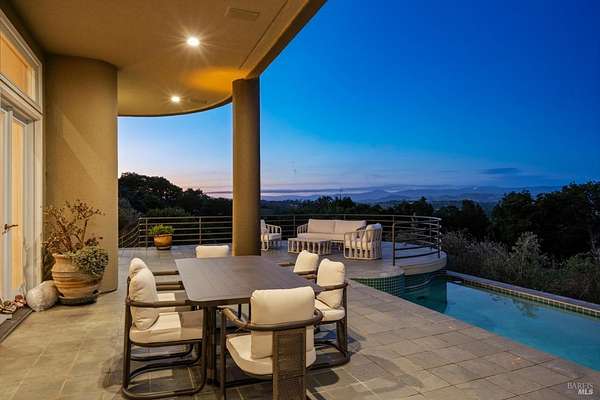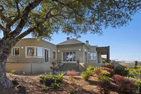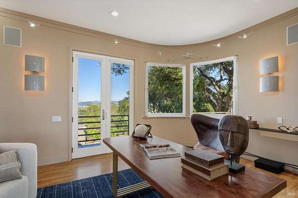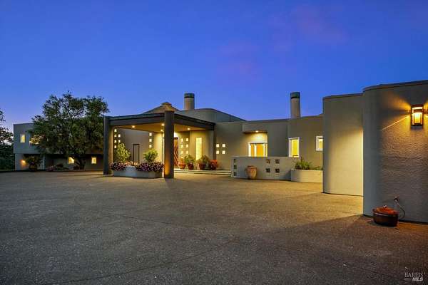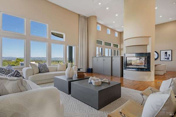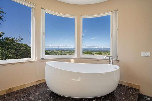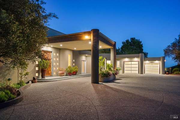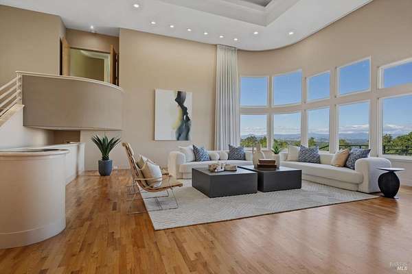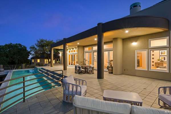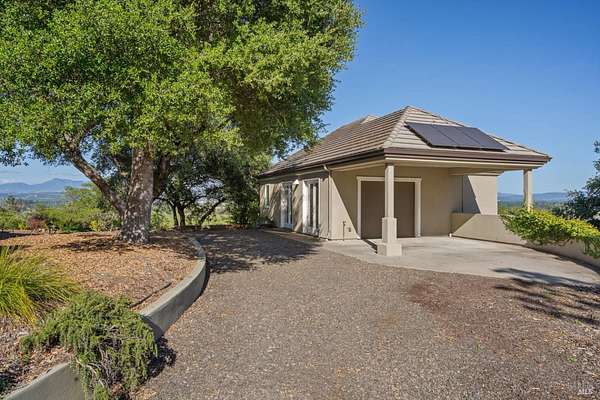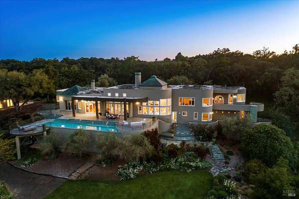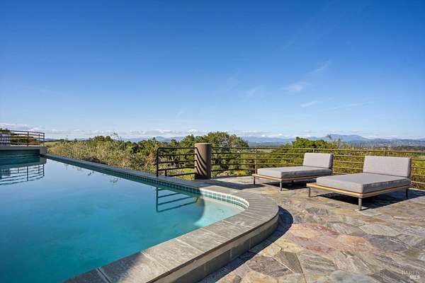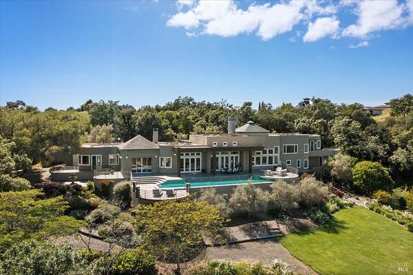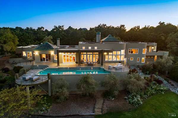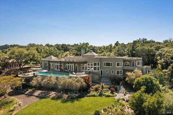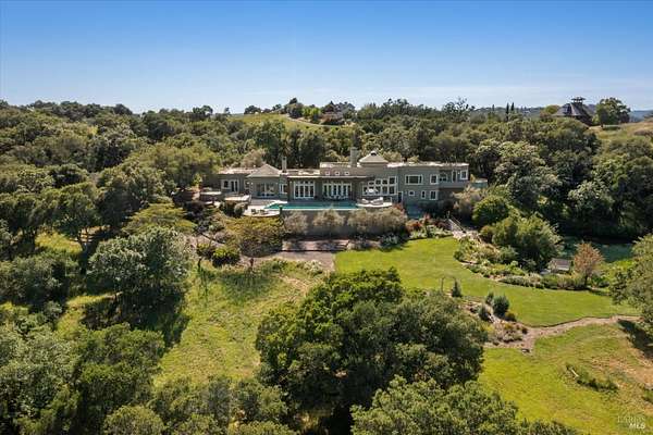 Set behind gates on approximately 26 acres in Northwest Santa Rosa, this private estate unfolds with a sense of scale, serenity, and sweeping beauty that's rare to find so close to town. From its elevated vantage point, panoramic views stretch across Sonoma County, from Geyserville to Rohnert Park, creating a constantly shifting backdrop of vineyards, hills, and open sky. The main residence spans approximately 5,500 square feet, designed to embrace both grand entertaining and relaxed everyday living. Walls of glass, soaring ceilings, and multiple view-facing decks draw the outdoors in, while the home's layout offers flexibility with multiple living spaces, two primary suites, and a dedicated office ideal for working remotely or hosting extended stays. The experience here is centered around lifestyle. Mornings begin with coffee overlooking rolling hills, afternoons are spent poolside under the Sonoma sun, and evenings transition effortlessly to the spa, sauna, or fireside gatherings. Tucked into the landscape, a private pond offers a quiet, unexpected escapeperfect for a slow paddle, peaceful reflection, or simply unwinding at the water's edge. Whether hosting intimate dinners or larger celebrations, the setting feels both impressive and deeply comfortable. Beyond the main residence, a separate approximately 1,056 sq. ft. home provides additional versatility, ideal for guests, multigenerational living, or income potential. The land itself is equally compellinggated, private, and thoughtfully maintained, with a sense of openness that allows for a variety of uses, from recreation to agricultural pursuits. Sustainable features, including an extensive solar system, complement the property's long-term livability. Just minutes from Santa Rosa and the airport, yet feeling worlds away, this is a property that delivers both convenience and complete escape, an opportunity to live expansively in the heart of Sonoma County.