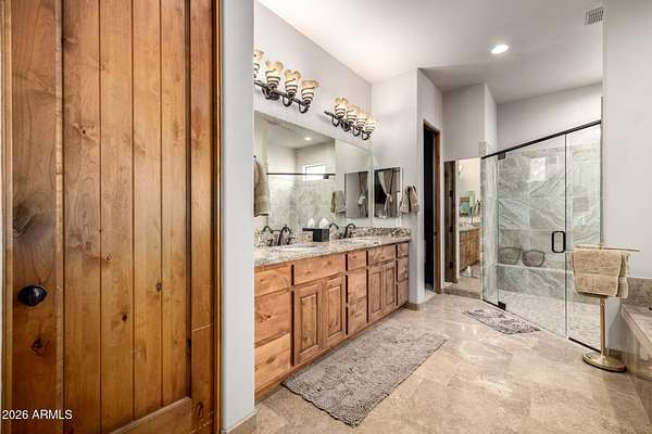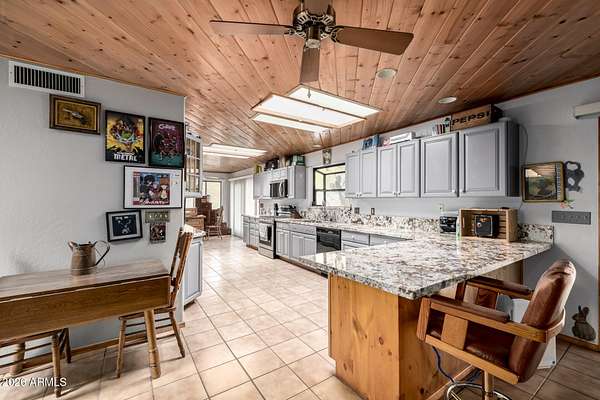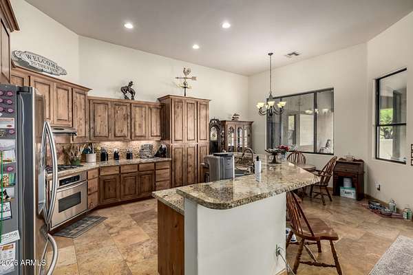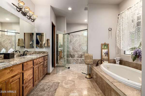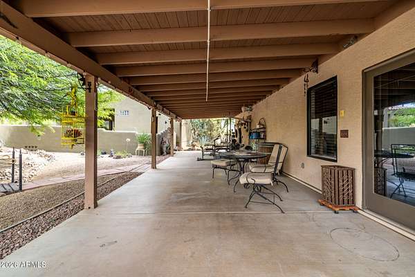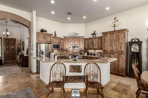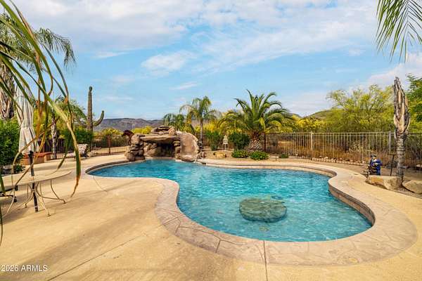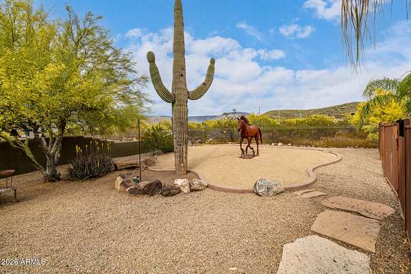Calling all Nature lovers, Horse people, and Car enthusiasts. This massive desert property offers far more than a typical home! Set on a beautifully landscaped lot with 360 degree mountain views, winding paver paths, mature trees, and standout Southwest character, the setting feels private, established, and made for enjoying Arizona living. 2660SF main house 1640 SF guest house 30X40 Steel building 40 x 40 Steel Building 4 horse stalls 3.75 acres Plus additional 4.75 acres next door also available!! Inside, the home blends warmth and scale with soaring ceilings, rich wood finishes, plantation shutters, and inviting gathering spaces. The great room makes an impression with a dramatic stone fireplace, while the spacious kitchen and dining area are designed for easy everyday living and entertaining alike. The oversized primary suite feels like a true retreat, complete with a spa-style bath featuring dual vanities, a soaking tub, and an expansive walk-in shower. Generous secondary bedrooms, updated baths, and a large, well-equipped laundry room add everyday function. Outside, the lifestyle appeal continues with a covered patio, resort-style pool, desert garden paths, and multiple spaces to relax and take in the views. And for the buyer who needs room for more, the massive detached shop/garage is the ultimate bonus--ideal for collectors, projects, toys, storage, or a serious workshop setup. Distinctive, spacious, and packed with versatility, this is the kind of property that rarely comes along.