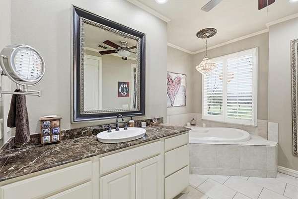 - Built-In Features, Cable TV Available, Decorative Lighting, Double Vanity, Eat-In Kitchen, Granite Counters, Kitchen Island, Natural Woodwork, Open Floorplan, Pantry, Tile Counters, Vaulted Ceiling(s), Walk-In Closet(s), Wet Bar