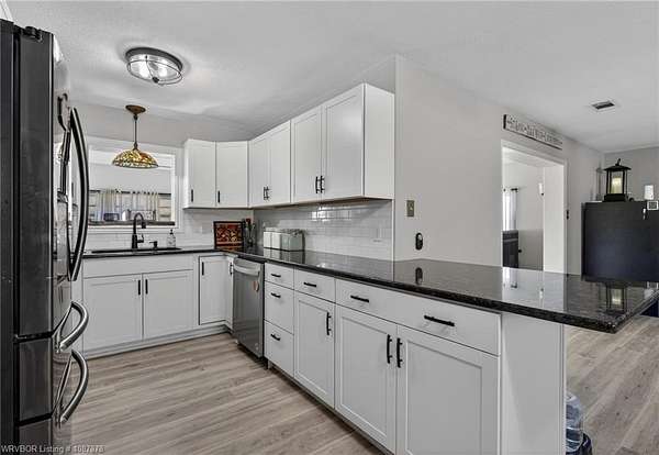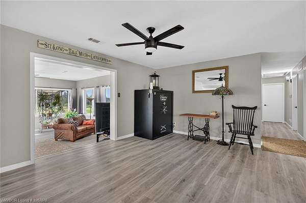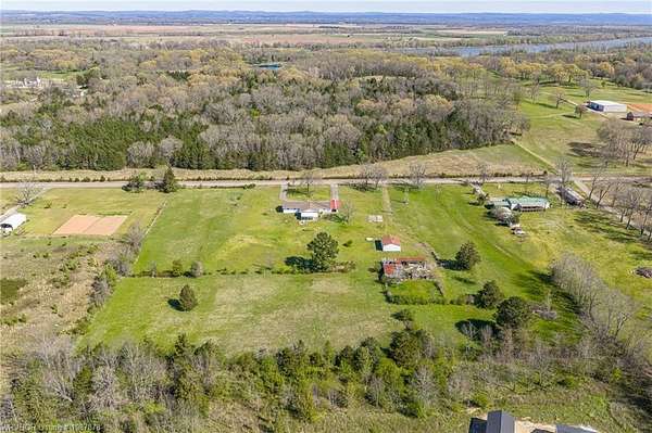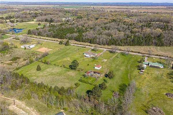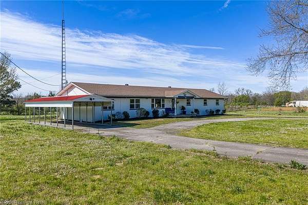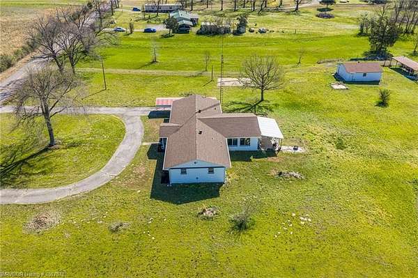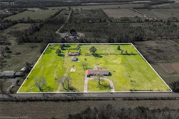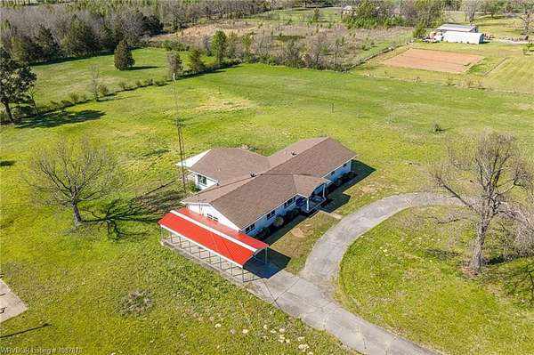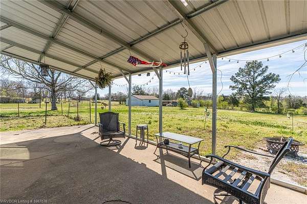 Discover the perfect fusion of modern luxury and functional country living on this nearly 7-acre estate, located outside of city limits for added freedom and flexibility. Extensively remodeled in 2021, this 2,652 sq. ft. home offers a rare and versatile floor plan featuring two primary bedrooms, providing an ideal setup for a Mother-in-Law suite or a private guest wing. The heart of the home is an open-concept chef's kitchen boasting premium quartzite countertops, custom cabinetry, and designer lighting. Peace of mind comes standard with a suite of recent high-value upgrades: new HVAC, plumbing, and water heater (2021); OGE whole-house insulation upgrade including attic and crawlspace (2024); and new vinyl windows. Adding even more confidence for buyers, the home was pre-inspected by a licensed inspector and ALL recommended repairs have been completed, offering true move-in-ready convenience and peace of mind. A detached 25x30 garage/shop with power and a roll-up door (painted 2024), plus a 2023 carport and patio cover providing covered parking for four vehicles. Leaf Guard gutter system (2023) and a roof replacement on both the house and garage (2016). Outdoor enthusiasts will love the fenced pasture-perfect for horses, cattle, or goats-and the private basketball court. Relax on the expansive front or back porches to take in the evening sky, or head just 1/4 mile down the road to the Vache Grasse boat launch for a day on the water. Conveniently located less than 20 minutes from Mercy Hospital, this turn-key property offers the space you want with the modern efficiencies you need. RD loan eligible, offering qualified buyers the opportunity for zero down payment financing-making homeownership more accessible than ever. Schedule your private showing today!