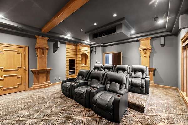 - Built-In Features, Built-In Wine Cooler, Cable TV Available, Cathedral Ceiling(s), Cedar Closet(s), Central Vacuum, Chandelier, Decorative Lighting, Double Vanity, Dry Bar, Flat Screen Wiring, Granite Counters, High Speed Internet Available, In-Law Suite Floorplan, Kitchen Island, Multiple Staircases, Natural Woodwork, Pantry, Smart Home System, Sound System Wiring, Vaulted Ceiling(s), Walk-In Closet(s), Wet Bar