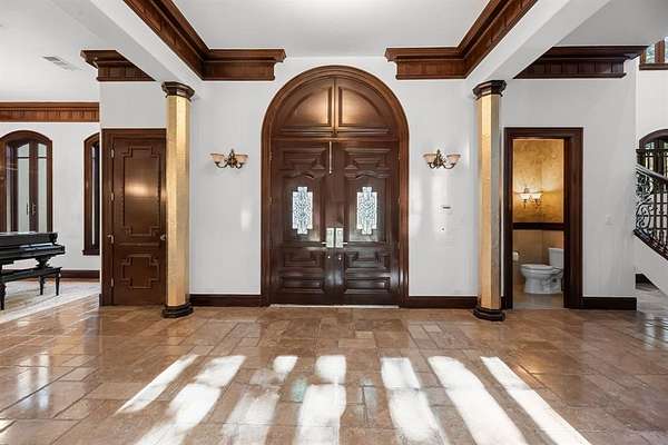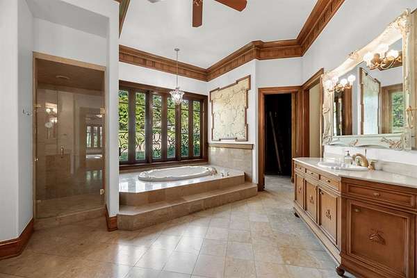 Experience refined living in an 8,300+ -square-foot timeless, French chateau-inspired estate, perfectly positioned along the fairway in one of the area's most exclusive 24-7 gated and guarded communities. Blending old-world elegance with modern luxury, this residence features five spacious bedrooms, each with an ensuite bathroom and walk-in closet, providing privacy and comfort for family and guests alike.