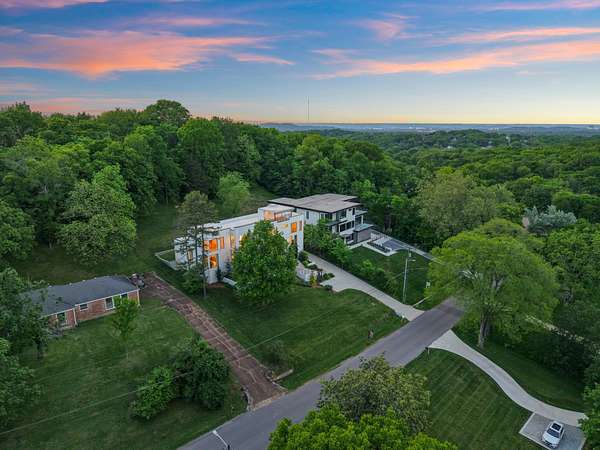 Positioned atop 1.64 acres in one of Nashville's most exclusive hilltop enclaves, this striking modern estate blends architectural distinction with sweeping skyline views. Spanning 6,222 square feet, the residence was honored as a 2022 Home of Distinction and showcases clean lines, curated finishes, and an effortless indoor-outdoor flow.
