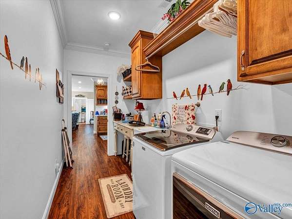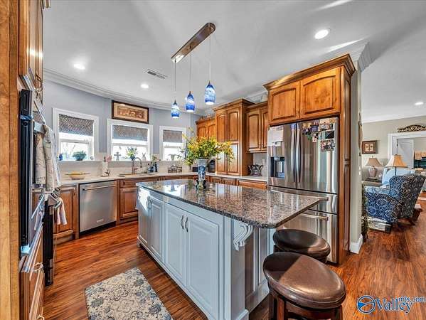 Est $2,706/moThis stunning brick home sits on over 2 acres of beautifully landscaped property with flowers and fruit trees. Enjoy sweeping lake views from the open living and dining area with LVP flooring throughout. The gourmet kitchen features custom cabinets, quartz countertops, a large granite island, coffee nook/wet bar, and hidden walk-in pantry. A spacious den is ideal for family gatherings. The primary suite offers an en-suite bath with dual vanities and large tiled shower, plus a walk-in closet connected to the laundry room. Upstairs bonus room easily converts to a 4th bedroom. Relax on the screened back porch overlooking the property