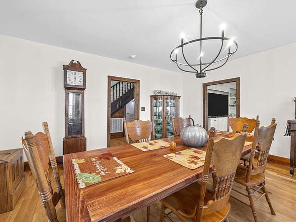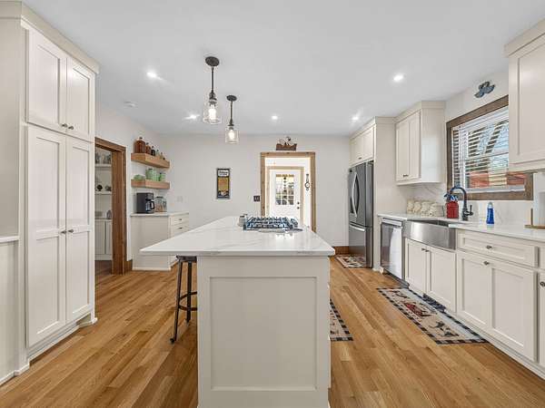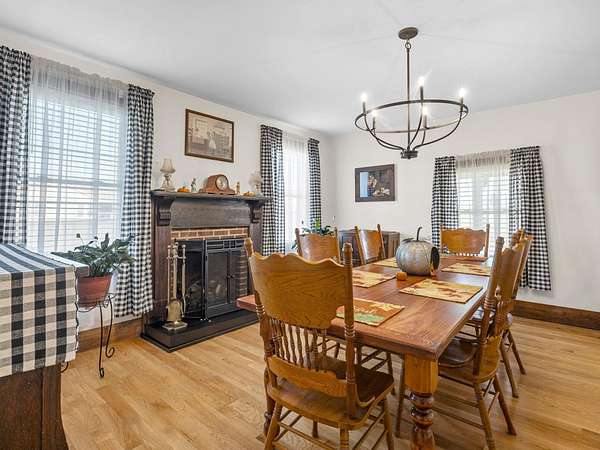Welcome to this gorgeous, recently renovated (2023) two story farmhouse with red metal roof and welcoming front porch located on a spacious 2.2 acre lot, a blend of country charm and modern comfort. This home offers space and relaxed living with 3 spacious bedrooms 2 1/2 bathrooms, 3080 sq ft of living space. The main floor primary suite features a fireplace, large bathroom and walk in closet. Upstairs you will find two additional bedrooms,1 bathroom plus 2 flex spaces. Outside there is a detached 24x32 garage, above ground pool and fenced yard.