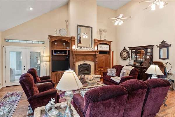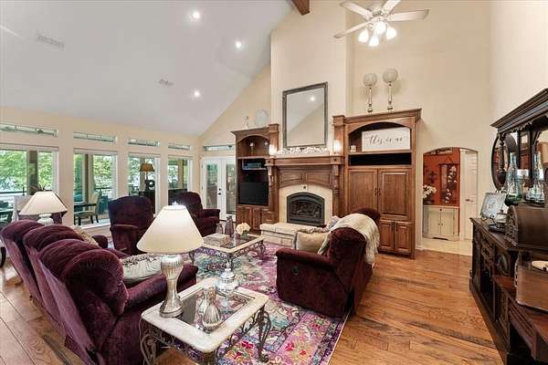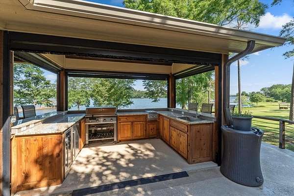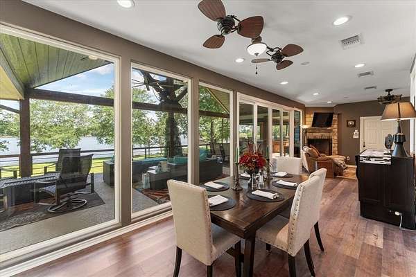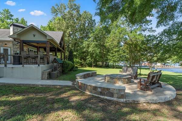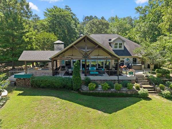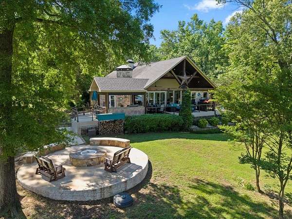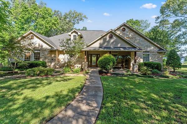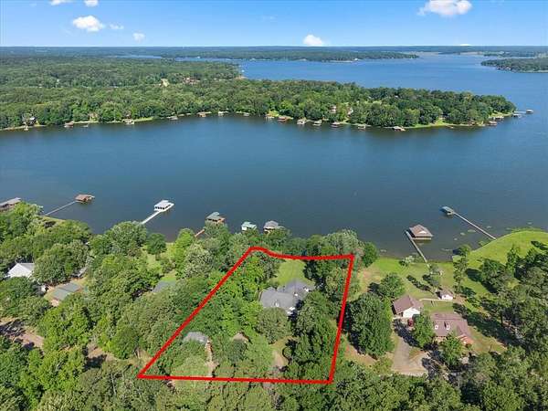 Nestled along the serene shores of Lake Bob Sandlin, this beautiful home has 3 bedrooms, 3 baths, office, formal dining area and sunroom with panoramic water views. This home is ideal for family gatherings and entertainment with this large kitchen with an island, breakfast room and living area with fireplace and wood floors in the living area. The primary bedroom has new flooring, and the primary bath has a walk-in closet, quartz counter tops, large shower and jacuzzi tub along with heated floors. The sunroom offers you options of a dining and den area with a stone fireplace to cozy up to on a cool day. The outdoor living area is outstanding with covered porch, hot tub, smokeless fire pit, outdoor kitchen that has motorized blinds to pulldown when needed with lots of sitting areas for guests. For your recreational needs follow along the nice path to the 2 stall boathouse. The shoreline is approx. 220'. The main house has an attached 2 car garage and there is a separate detached garage that has room for 2 cars and has a mother-in-law suite with a living area, 1 bedroom and 1 bath with a front porch. This can also be used as a VRBO if desired. This will come fully furnished and you are ready to go immediately! You will also have a storage room that is big enough to house a golf cart or other big items you need. The main house has a full house generator. The circle drive offers extra parking for guests. This home has too many amenities to mention so please call today and get all the details for this luxury property on the lake.