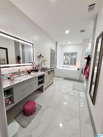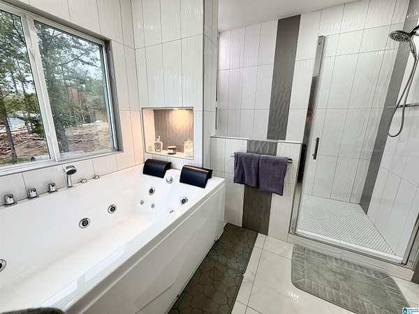 - Dressing Room, Garden Tub, Jetted Tub, Linen Closet, Separate Shower, Separate Vanities, Shared Bath, Sitting Area in Master, Split Bedrooms, Tub/Shower Combo, Walk-In Closets