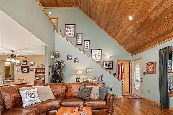 Home and Xtra lot!! Looking for Mountain View? Lake view? Family log cabin in the woods? This is it! Much loved lake home is now available for generations of Dale Hollow Lake lovers to enjoy. Great design with main level master suite, open concept floor plan (soaring ceiling) living room (stone Fireplace), dining and kitchen (granite tops, island, Hickory cabinets.) and laundry. Travel upstairs to loft bedroom, a 3rd bedroom and full bath. Lower level is full finished walk out basement with den, full bath, family/game room (gas fireplace) and office/extra sleep space. Exterior covered lake view deck (main level), Lake view patio lower level and two car detached garage (24x24) for boats/lake toys. Location beautiful Cornerstone neighborhood of Dale Hollow Lake with Willow Grove Marina just 15 minutes, Livingston city for shopping and healthcare 15 minutes. Lot 25 E. Sunset Blvd included in purchase.