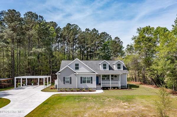 Enjoy the perfect balance of peaceful country living and convenient access to town in this stunning new home situated on 3+ private wooded acres just outside of Leland. This property has incredible potential for nature enthusiasts, homesteading, hobby farm, equine estate, and hunters and boaters alike. Feel free to walk the property during a scheduled tour and take in all the beauty. Built with Superior 2x6 construction and an encapsulated crawl space, and with 2 separate wells on the property, this spacious 3-bedroom, 3-bathroom home with 2 flex rooms upstairs offers a thoughtfully designed living space with a bright, open floor plan ideal for both everyday living and entertaining. The oversized kitchen is a standout feature complete with granite countertops, double ovens, walk in pantry, an abundance of cabinet space, and a center island. The main level includes a first floor primary suite with sitting area and a private en-suite bathroom with large walk in shower. Downstairs you'll find two additional bedrooms, a full bathroom, and utility room complete with a utility sink. Upstairs you'll find an expansive bonus room full of possibilities for family and entertaining. Another full bathroom with walk in shower, and two more rooms that could serve as bedrooms, offices for those who work from home, exercise room, craft room or flex space making this an ideal entertainment area, guest suite, or perfect for multi generational living. Surrounded by mature trees and natural privacy, this home is a must see at sunset- absolutely breathtaking through the woods and neighboring farm land. And- it is only minutes from Rice Creek boat launch which is a prime fishing and kayaking location. Bring your boat & launch anytime! This property offers the tranquility of country living while remaining just minutes from shopping, dining, golfing and amenities in Leland, 30 minutes from Brunswick beaches, 15 minutes to downtown Wilmington, and an hour to Myrtle Beach.