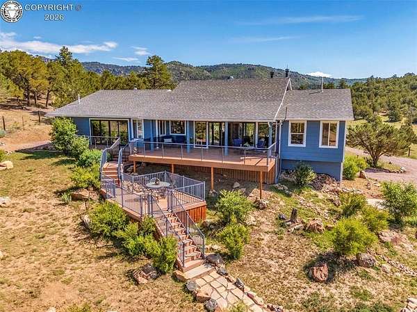451 Thunder Trail is back with a brand new roof! This exquisite mountain horse friendly retreat perfectly situated between Westcliffe & Canon City. This 35-acre property offers the best of Colorado living, unmatched privacy, stunning views of the Sangre de Cristo Mountains, & a thoughtfully upgraded home. The 2,968 SF residence features 3 spacious bedrooms & 2 beautifully remodeled bathrooms on the main level. The kitchen showcases high-end Woodland cabinetry, soft-close drawers, stone countertops, premium appliances including a double induction oven, & a metallic backsplash. Newer windows & oversized sliding doors invite in natural light & frame the spectacular mountain views. Heating & cooling is provided by 3 mini split units, a new soap stone wood stove & electric baseboards. Downstairs, a finished walkout basement provides space for a game room, hobby area, or guest retreat, complete with a bonus room filled with sunlight, perfect for plant lovers. A cozy wood stove & additional bathroom complete this versatile space. Relax & enjoy hummingbirds that flock here every year. Entertain on the decks or just watch your horses grazing in the pasture. The land offers a perfect blend of pasture and terrain, featuring 11 fenced acres & a sizable corral by the barn. Additional features include a two-car attached garage, a large detached garage with RV parking, a powered barn with water, two large stalls with sliding barn doors & a lobby area, turn outs & a tack room. The land boasts a solar-powered gated entrance, ATV trails, a private shooting & driving range, & a 15 GPM well. No HOA or covenants restrict your freedom. Starlink internet is available to keep you connected. Whether you're stargazing, exploring nearby favorites like the San Isabel National Forest, or just strolling on this 100% walkable property this is a rare chance to live amid Colorado's untouched beauty while still offering multiple scenic routes to Canon City, Westcliffe, Pueblo, and Colorado Springs.