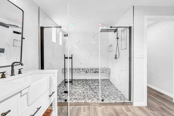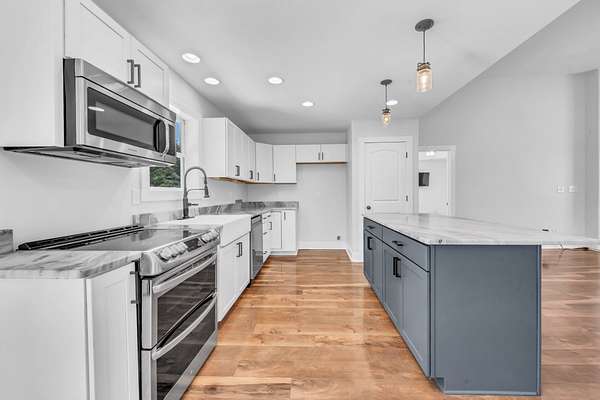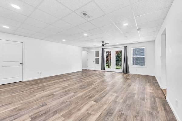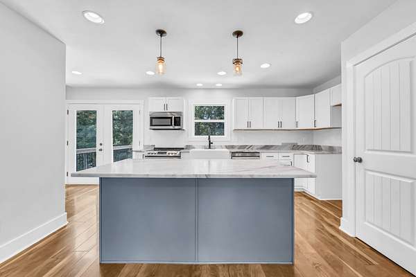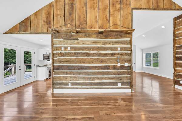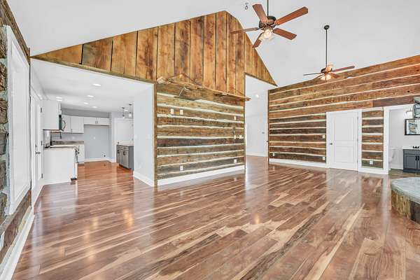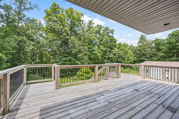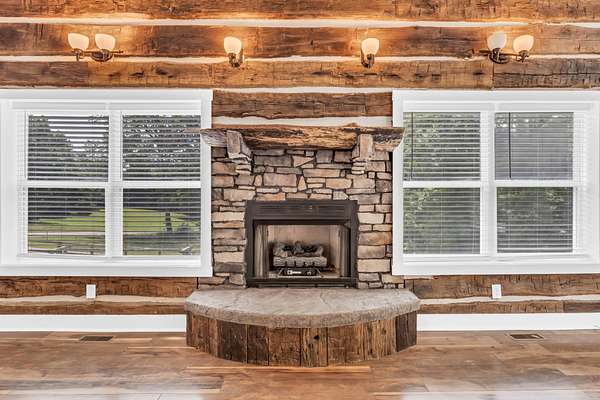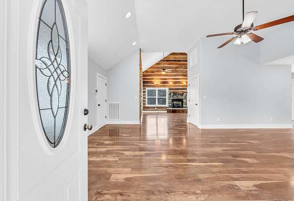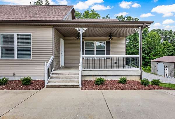 This home is a must see with $200,000 in upgrades and renovations. For those who enjoy the outdoors, these 5 beautiful acres offer a mix of woods and open areas with established raised garden beds, apple trees, blackberry bushes, walking trails, a year-round spring-fed creek, new fencing, and a beautiful upper deck to enjoy. This home has been completely updated with modern touches throughout, including a bright, sleek kitchen with a large walk-in pantry, farmhouse sink, double oven, and open-concept layout. The living room features soaring ceilings, a gas fireplace, and an oversized storage closet. The main-level bedroom includes a built-in Murphy bed to maximize space and has an attached full bath with an oversized tub. Downstairs, the luxury and modern feel continue with all-new flooring, three additional bedrooms, and a separate laundry and storage area. High-tech security features include sensors on all doors and windows, a Nest thermostat, Ring doorbell, and an easily accessible, family-sized storm shelter. In addition to the attached two-car garage, the property also boasts a spacious 1,100-square-foot, climate-controlled multipurpose shop with premium finishes, including a fireplace and half bath. Perfect for remote workers, crafter's, or the ultimate game room. Also, a 50 amp RV hookup and most importantly, High Speed Fiber Internet! Explore the home from anywhere--click through the virtual tour now. Additional acreage available for those seeking even more space and opportunity.