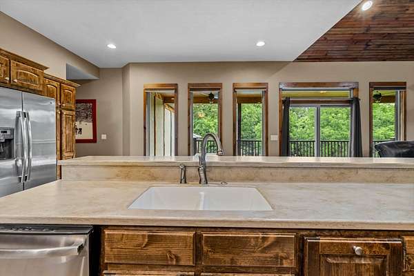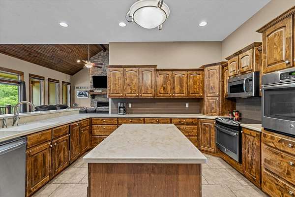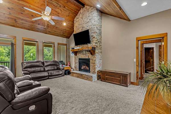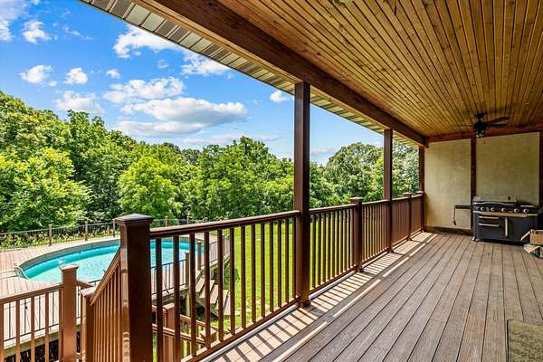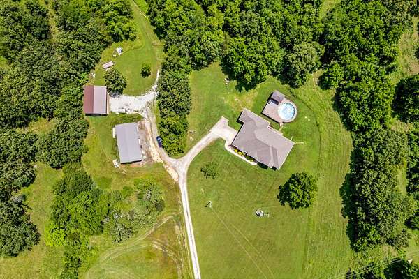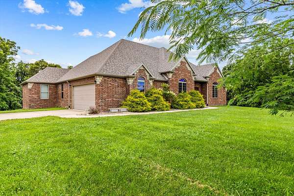 Discover a rare blend of country living with luxury on 14.23 picturesque acres. Here is where you will find this one owner-custom brick, 5-bedroom, 3.5-bath home with exceptional craftsmanship and comfort at every turn. Tucked back off the road this estate offers privacy and convenience. Step inside to find custom cabinetry, fireplace, high ceilings and generous living spaces perfect for both everyday living and entertaining. A formal dining room provides an elegant setting for gatherings, while the main-level primary suite delivers true relaxation with its walk-in shower, jetted tub, and spacious walk-in closet. The finished full basement expands your living options, featuring a large family room, game room, and a dedicated theatre room, ideal for movie nights or hosting guests. Outdoors, enjoy your own private retreat with a pool including a composite wrap-around deck and a covered gazebo--perfect for quiet mornings or weekend entertaining. The detached shop is 56x30 complete with concrete floors, garage doors and full electrical wiring. There is an ADDITIONAL versatile finished structure that is 50x24 with heating and cooling in place and a covered porch that offers endless potential! There are NO RESTRICTIONS!!! Do what you want with YOUR PROPERTY. This would be a fantastic dedicated home office, home-school facility, business, rental or Airbnb. This would also make a wonderful guest house or in-law suite offering multi-generational living. Multiple garden areas and enough land for horses, a few head of cattle or livestock of your choice if you wish! With its acreage, privacy, and thoughtful upgrades, this property is truly a rare find. Located only 45 minutes to Springfield and just over an hour to Branson. Call today for a private viewing of this one of kind property in the Ozarks!