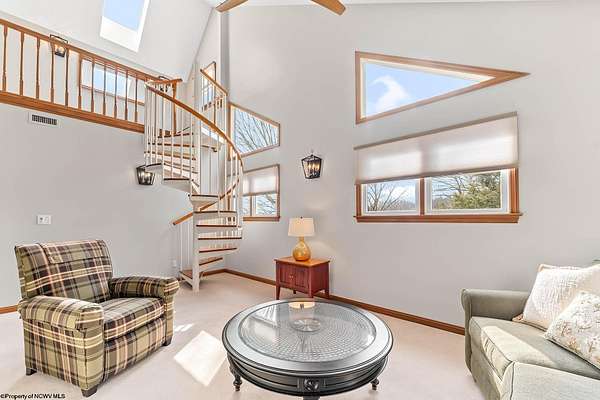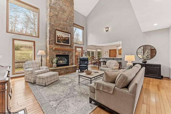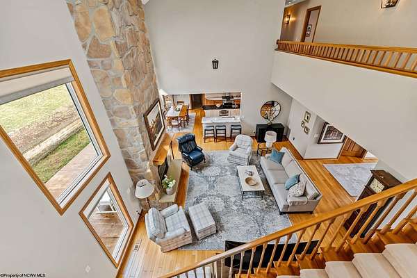 Imagine enjoying your morning coffee on a beautiful oversized porch with seasonal view of the mountain and Cheat Lake. Your dreams awaits as you enter this immaculately kept craftsmanship home. You will be welcomed with soaring ceilings and an inviting stone fireplace. This home is perfect for entertaining guests or hosting large gatherings. It boasts an open concept eat-in kitchen with marble countertops, a large island and a hugh pantry. First floor en suite bedroom offers seasonal views of the Lake. Owners bath with inviting large soaker tub and step in rain shower. Unique spiral stairs will lead you to a small Belvedere with year around Lake views. This space also feathers a skylight, for for Astrology enthusiasts or simply taking in views of the moon and starlit skies of Almost Heaven. Upper level features 3three oversized bedrooms with Jack and Jill baths. The 4th room could also be used as a gathering area or playroom. Movie Theater in the lower level along with a large living area with access to the exterior. Heated Detached garage with 1/2 bath and large finished room above. Then bring your day to a close with a refreshment on the private back patio with serene landscaping and a Koa Pond. Many updates to this home. Extra 3rd Lot has access to North Greysone drive.