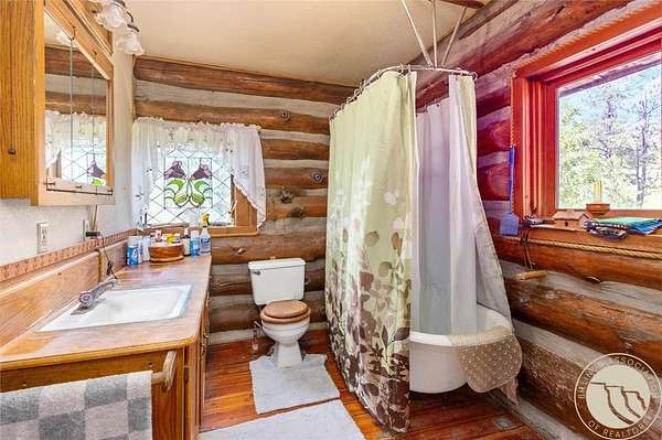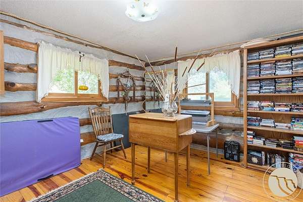 Presenting for the first time-4511 Pine Hills Rd, a handcrafted cabin home on 10 private acres with no CCRs. Built by the original and only owners, this property includes a matching detached garage with a fully insulated and heated dream workshop above. Two functional wells serve the land-one for irrigation, one for the home, which pumps to a 3,000-gallon cistern. The home features custom stained-glass windows and a stunning fireplace built from black granite rocks with streaks of white quartz. This property includes a private pond, greenhouse, wood shed, storage buildings, and underground sprinklers supporting garden beds and the yard. This is a rare opportunity to own a truly unique Montana property with character, privacy, and space to live freely. Includes shop equipment, tools, and extras-ready for your next chapter in rural Montana living.