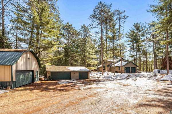 Nestled on over 3 private acres with over 300 feet of frontage on Island Lake, this exceptional 4 bedroom, 4 bath home offers the perfect blend of space, privacy, and Northwoods luxury. Surrounded by mature trees, the setting is peaceful and secluded with stunning lake views and direct access to the water. Inside, the spacious great room showcases hardwood floors and an open-concept design ideal for both everyday living and entertaining. The kitchen features granite countertops, abundant cabinetry, and a layout that flows seamlessly into the main living space. The walk-out lower level is designed for entertaining, complete with a large recreation area and custom bar—perfect for hosting year-round. Car enthusiasts and hobbyists will appreciate the impressive 7+ garage spaces, including a detached garage and an additional pole building offering ample room for vehicles, toys, and storage. Whether you’re searching for a full-time residence or a private lake retreat, this Island Lake property delivers unmatched space, functionality, and a serene, wooded setting.
