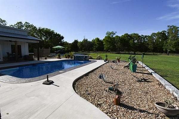 Beautiful Park like setting 3 bed/2 bath/2 car garage with 1 bed/1bath Guest house on a little over 4 acres. Guest House overlooks a Gorgeous pool with waterfall to enjoy on those hot summer days and evenings, over looking a pretty pond on end of property. Shed/ Horse barn with tack room included or could be a storage shed. This home also has a large Propane generator that will run the main home and Guest house.